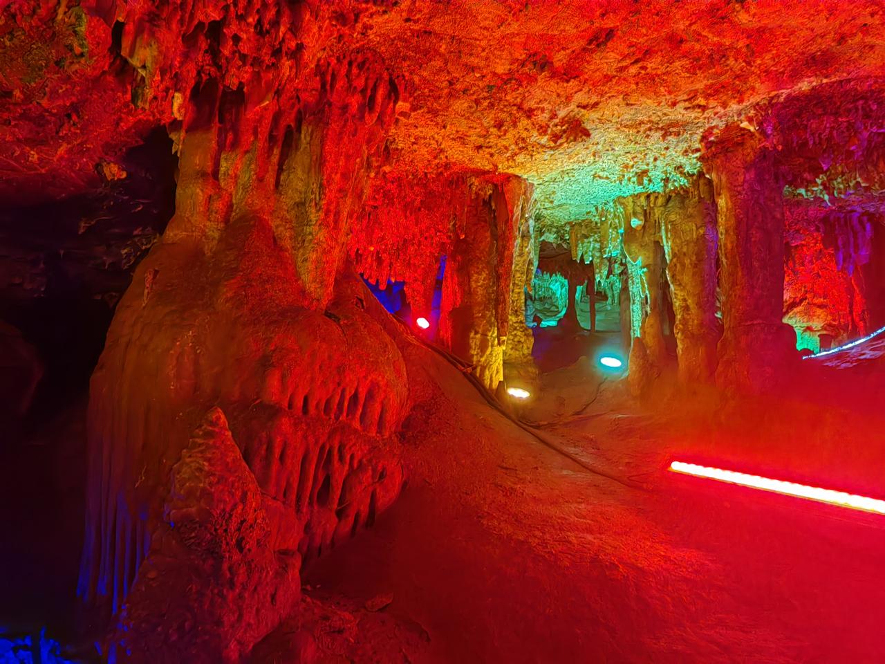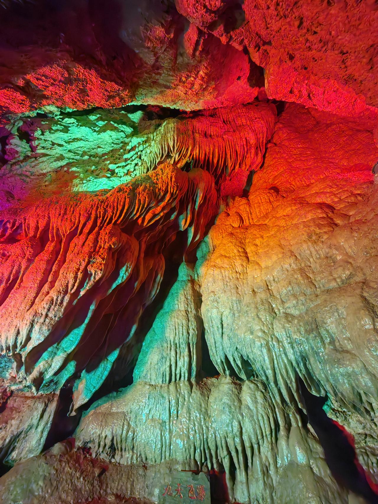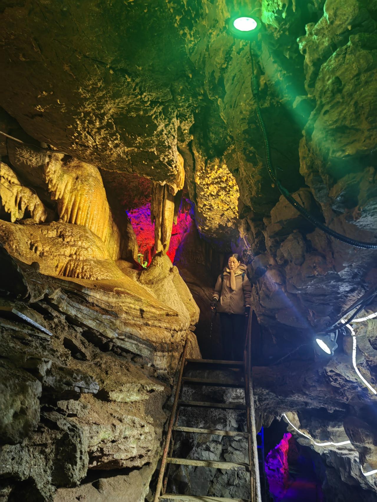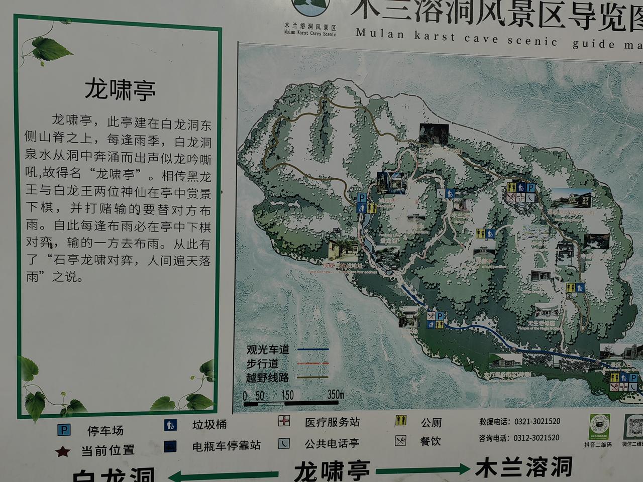 礼拜六去了一次满城木兰溶洞。传说花木兰曾在那里练兵的地方。木兰溶洞位于保定满城区,距离保定40公里,抖音门票30,中午还有免费自助餐。木兰溶洞在木兰峪景区内,售票口向外移了有一公里。进入大门后,没有多久就有一个岔路,从岔路口向上那里有白龙庙和无天老母庙,白龙庙里有一口井,下来后,继续往前走,到达原先那个木兰峪的牌坊,过了牌坊,前面有一个小停车场,停车场边上就是中午吃自助餐的地方,沿着边的石头台阶,大概10分钟就到了木兰溶洞,验票的是一个老头儿,也是木兰溶洞的主播。木兰溶洞发现在六七十年代,开发在九十年代,在开发的时候,里面石笋等钟乳石损坏严重,也有他们自己凿下来的,因此进入里面,几乎看不到完整的钟乳石,但也可以凭借你的想象力,在灯光下,看到好多漂亮的石笋造型,观音阁,水晶宫,群仙聚会等,溶洞不长,300米,有半小时就可以了,里面的路还可以,就是要注意碰头。出溶洞后你可以沿着右边铺好的路上山,看到那个小亭子,叫龙啸亭,传说是白龙和黑龙在这里下棋的地方,谁输了谁去给百姓布雨,亭子上有一副对联“石亭龙啸对弈,人间遍天落雨”,从亭子这里向西看,就是我们曾经去过的莲花山,黑龙庙就在那里,黑龙庙也有一口井,你也可以过去,我们没有去,继续向下走,有一白龙洞,那里白龙的洞府,但是没有开发,洞口封着,没有必要过去,山下有杨成武指挥所遗址,现在只是几个字,一个多小时下来,正好到达停车场,停车场里就停了六辆车,到了吃自助餐的时候,三四个菜,不是纸餐盒,是餐盘,还有蛋汤,馒头,有的时候还有饸饹,不过今天没有饸饹。木兰溶洞是一个私人景区,在九十年代初就被承包了,一年也就几千块钱吧。我们出了木兰峪景区,向着曹仙洞景区出发,两个景区距离几公里,很近。曹仙洞景区有好多道教寺庙,也比木兰峪都寺庙规模高大,在路口看到一小块躺在路边的石碑,介绍了曹仙洞,在路上见到一个老道,他说,参观寺庙不收费,进洞收费30元,,我们先看了山下的九母宫,正要上山的时候去拜一拜山上寺庙的时候,不知道从哪里出来一个村民,说上山就收费,我们说不进洞,他说不进洞也收费,我说你就是想收点钱,是不是,他很诚恳,说就是为了收钱。我们只好灰溜溜的走了,看来,曹仙洞人少是有原因的。