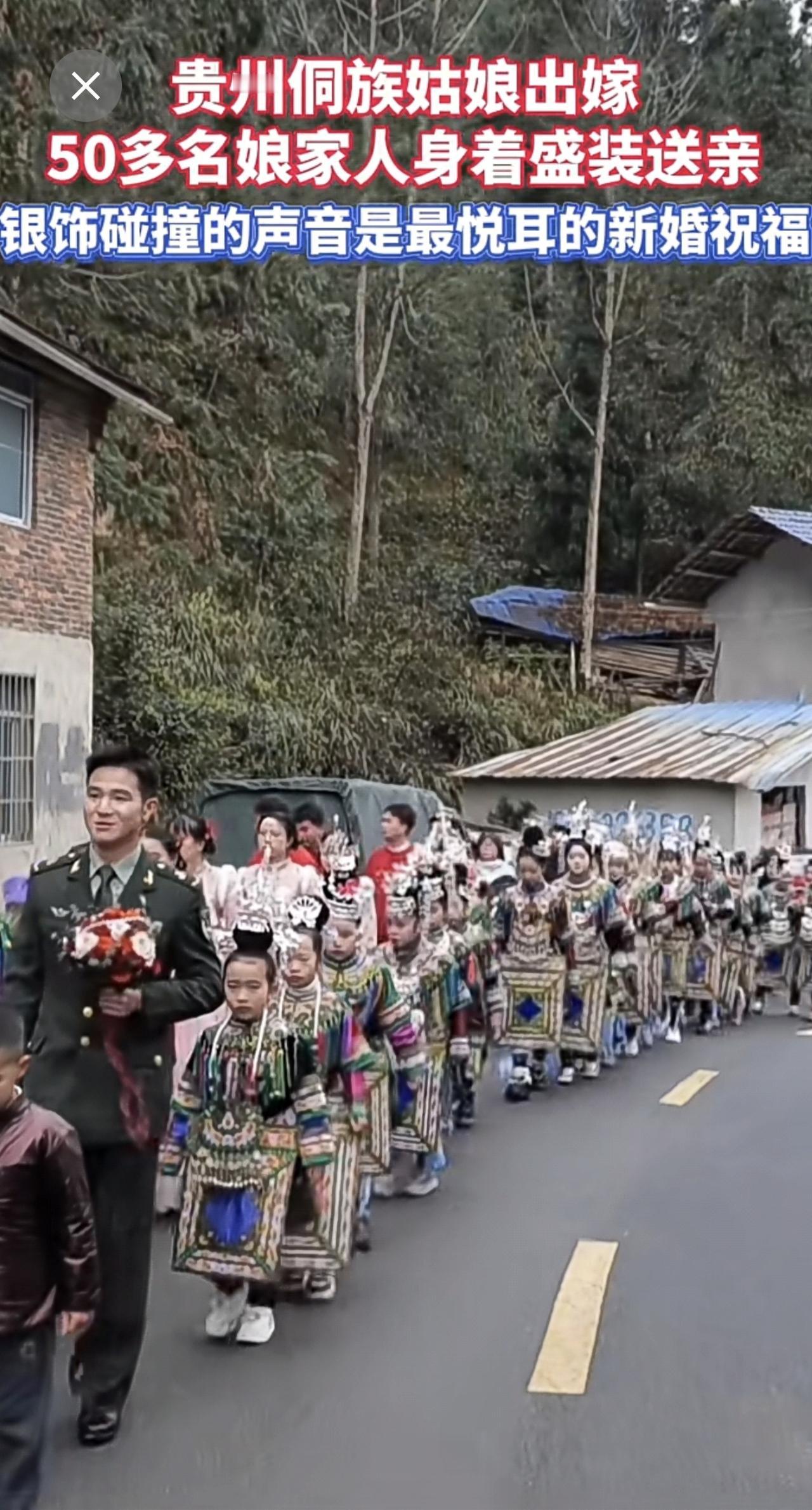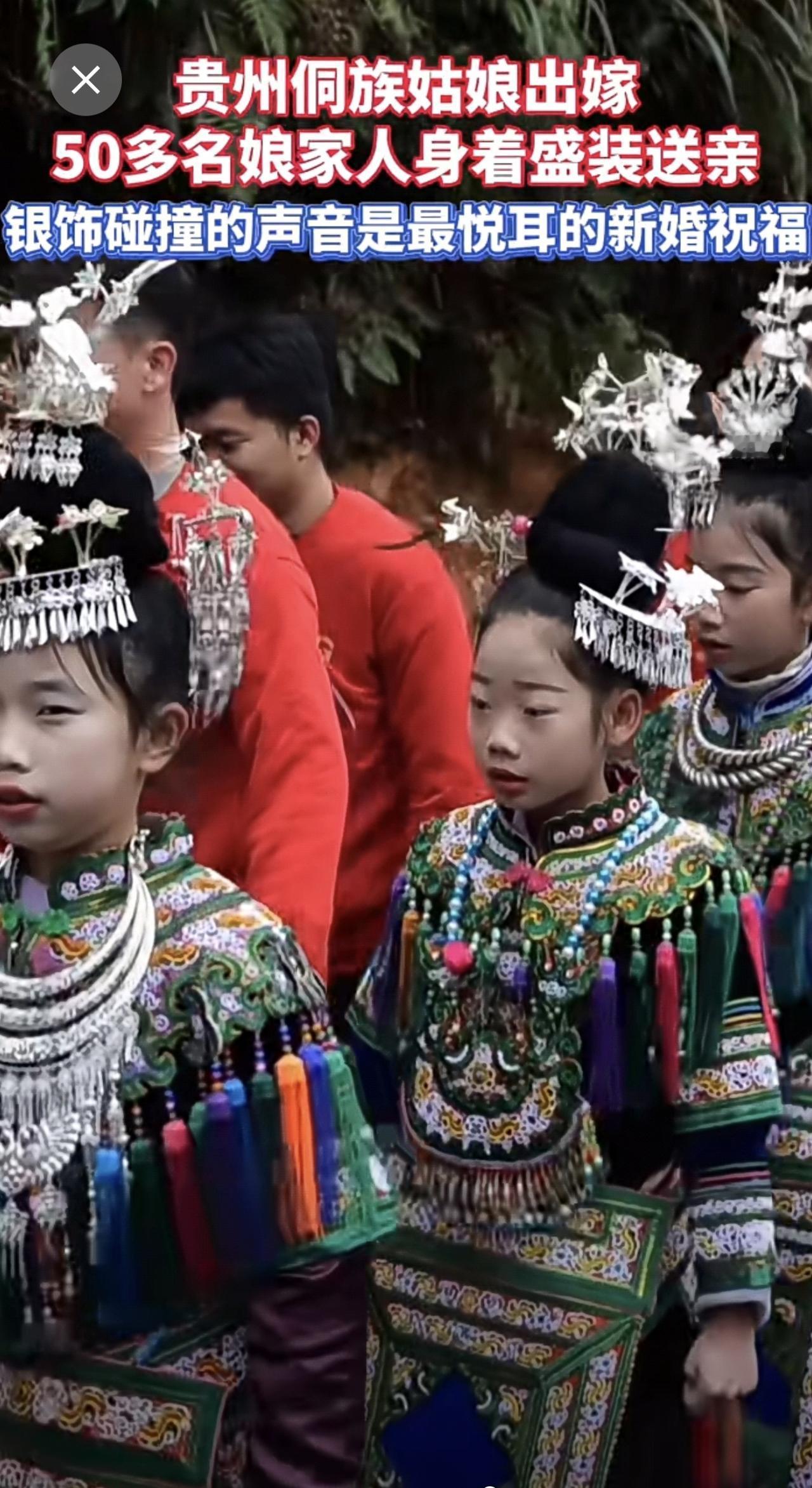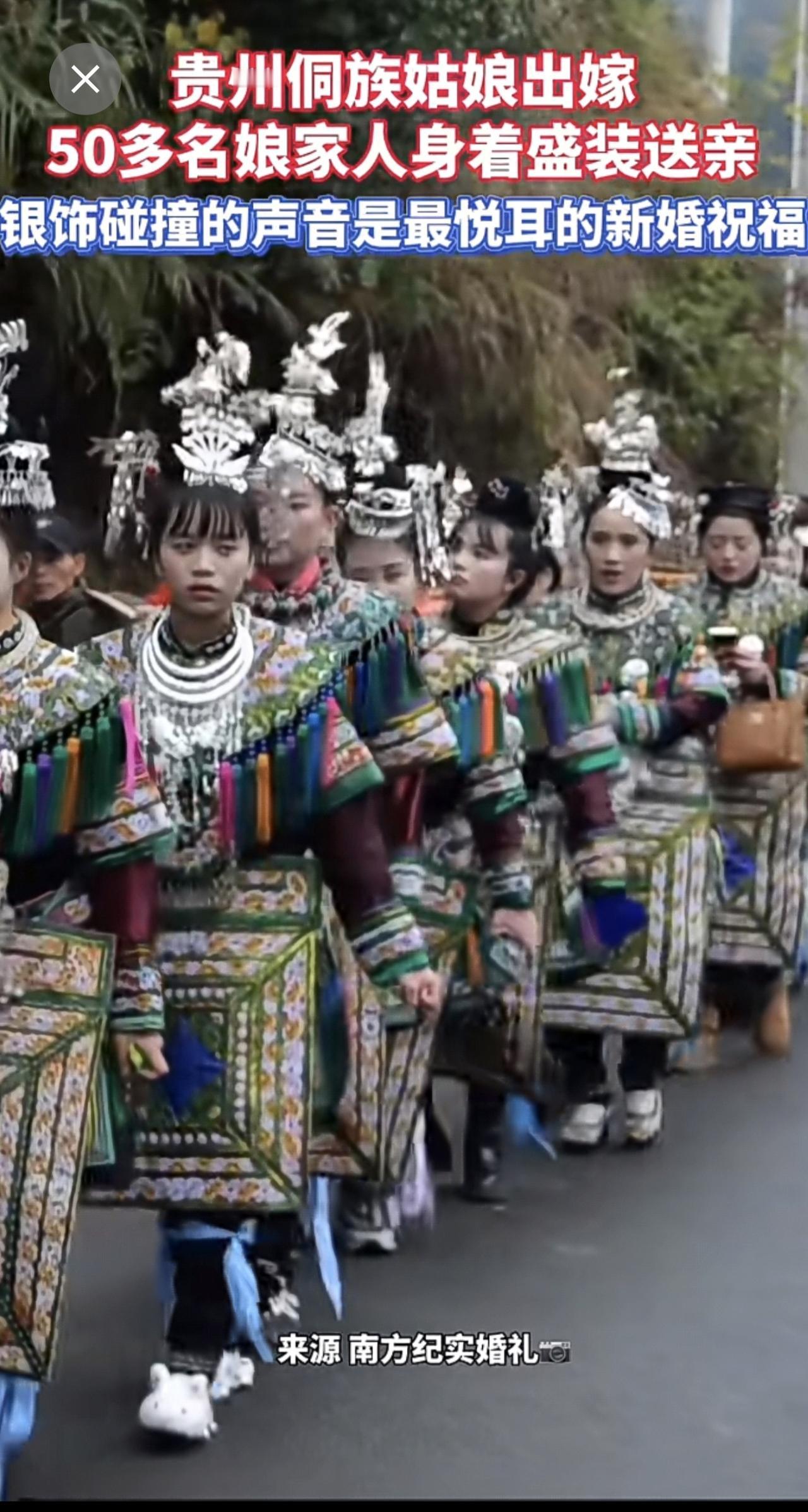 银饰碰撞的声音是最悦耳的祝福!贵州侗族姑娘出嫁,50多名娘家人身着盛装送亲。