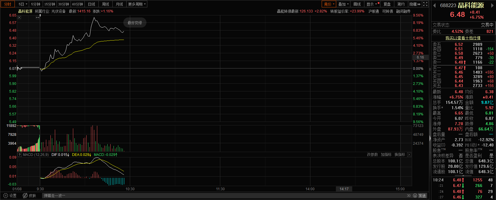 上证报中国证券网讯(邱思雨记者操子怡)1月8日早盘,光伏板块高开,太空光伏方向持续走强。截至10时23分,晶科能源涨近7%。