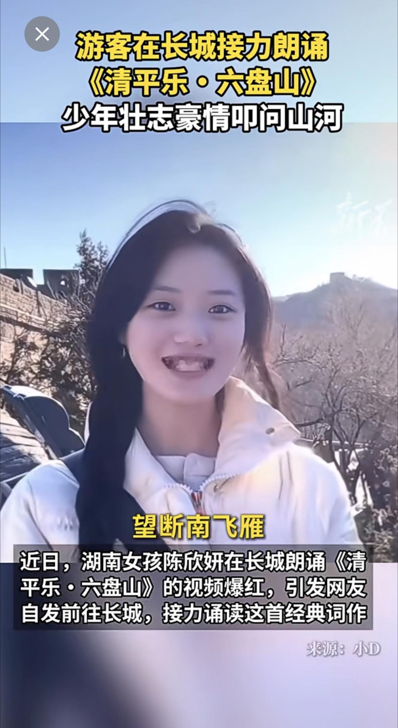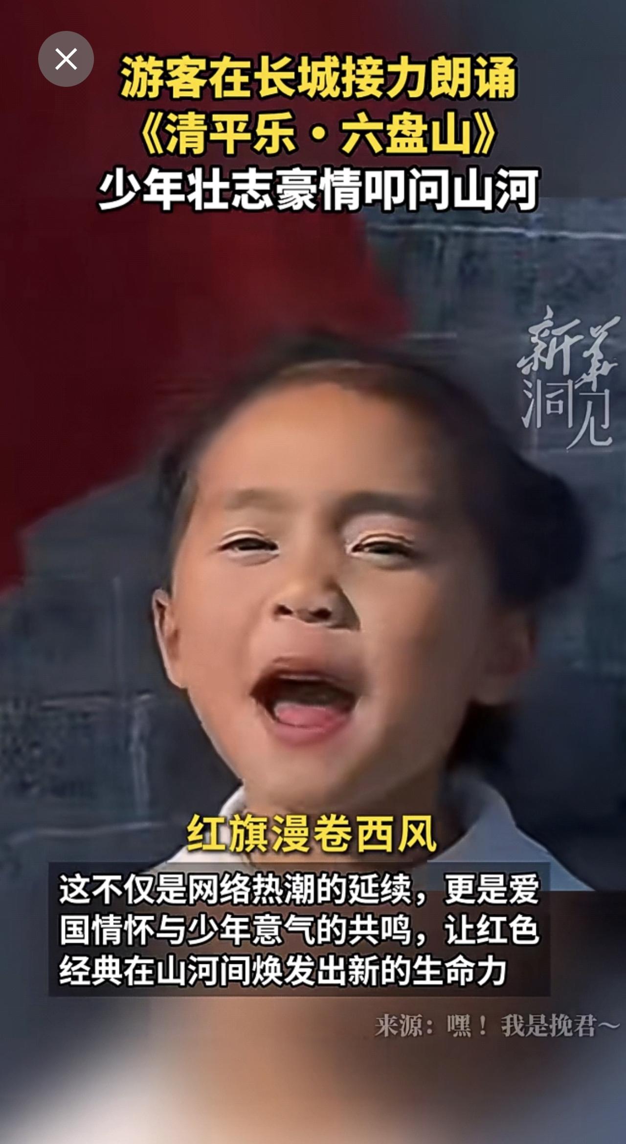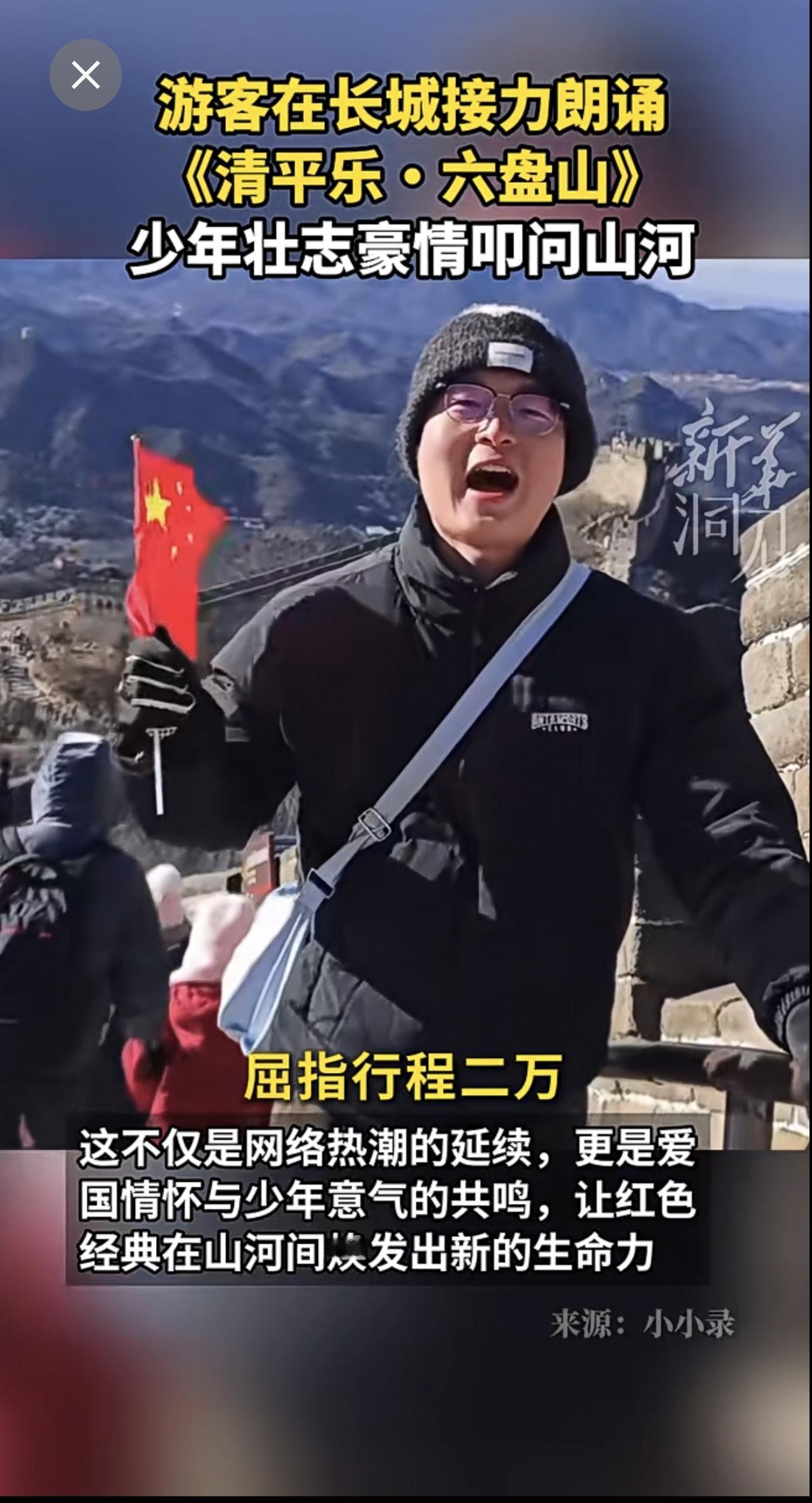 游客在长城接力朗诵《清平乐·六盘山》,少年壮志豪情叩问山河!