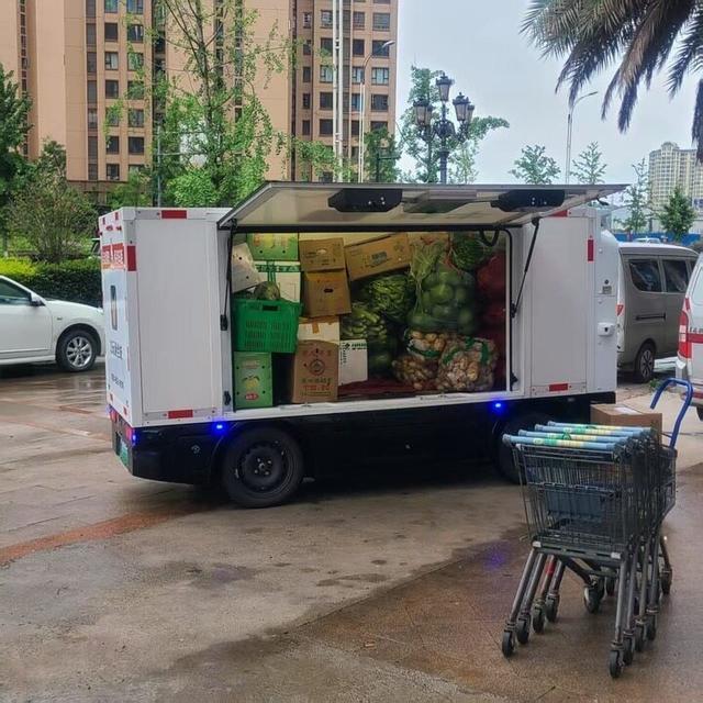12月27日,遂宁市的一辆无人驾驶车正在运送果蔬。(受访者供图)