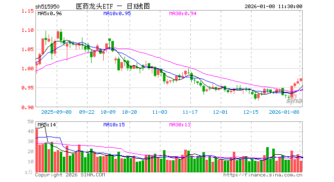 1月8日,截止午间收盘,医药龙头ETF(515950)涨0.72%,报0.973元,成交额1049.05万元。医药龙头ETF(515950)重仓股方面,药明康德截止午盘涨0.02%,恒瑞医药跌0.38%,迈瑞医疗涨0.33%,联影医疗涨0.64%,片仔癀涨0.13%,爱尔眼科涨0.62%,长春高新涨1.92%,科伦药业涨6.38%,新和成涨0.27%,华东医药涨0.00%。