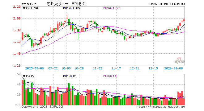1月8日,截止午间收盘,半导体龙头ETF(159665)涨1.44%,报1.976元,成交额2508.05万元。半导体龙头ETF(159665)重仓股方面,寒武纪截止午盘涨4.66%,中芯国际涨1.78%,海光信息涨10.65%,北方华创跌1.94%,澜起科技跌0.82%,兆易创新跌0.80%,中微公司跌0.98%,豪威集团涨0.93%,长电科技涨0.59%。