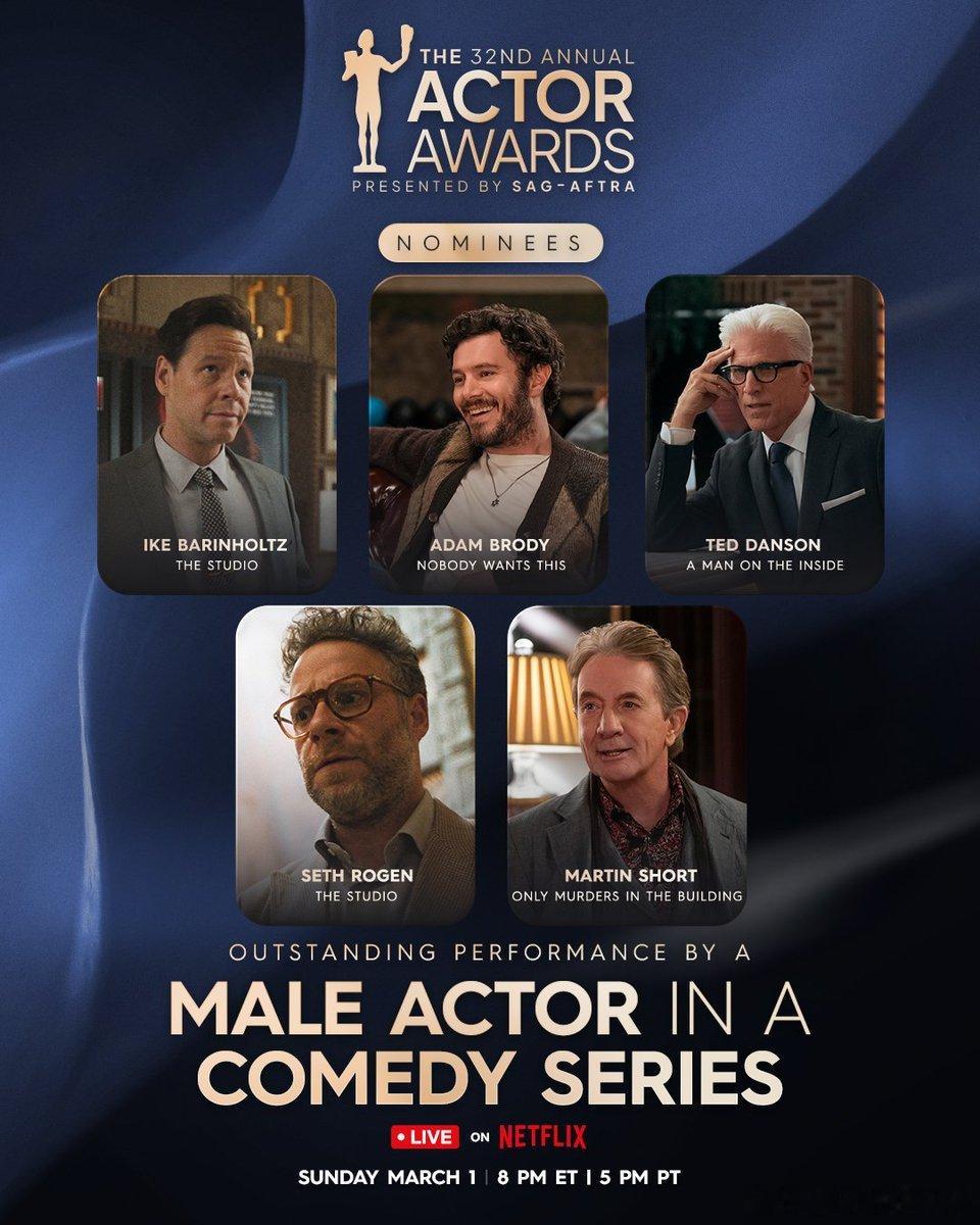 2026年演员工会奖剧集类提名:剧情类最佳群戏《头号外交官》《石油天王》《匹兹堡医护前线》《人生切割术》《白莲花度假村》 剧情类最佳男演员斯特林·K·布朗《极乐凶间》比利·克鲁德普《早间新闻》沃尔顿·戈金斯《白莲花度假村》加里·奥德曼《流人》诺亚·怀尔《匹兹堡医护前线》剧情类最佳女演员布丽特·洛薇尔《人生切割术》帕克·波西《白莲花度假村》凯莉·拉塞尔《头号外交官》蕾亚·塞洪《同乐者》 艾米·卢·伍德《白莲花度假村》 喜剧类最佳群戏《小学风云》《熊家餐馆》《绝望写手》《大楼里只有谋杀》《片厂风云》喜剧类最佳男演员伊克·巴里霍尔兹《片厂风云》亚当·布罗迪《天作不合的我们》特德·丹森《新手老卧底》塞斯·罗根《片厂风云》马丁·肖特《大楼里只有谋杀》 喜剧类最佳女演员凯瑟琳·哈恩《片厂风云》凯瑟琳·奥哈拉《片厂风云》珍娜·奥尔特加《星期三》珍·斯马特《绝望写手》克里斯汀·韦格《皇家棕榈》 电视电影/限定剧最佳男演员杰森·贝特曼《黑兔》欧文·库珀《混沌少年时》斯蒂芬·格拉汉姆《混沌少年时》查理·汉纳姆《怪物:艾德·盖恩的故事》马修·瑞斯《兽藏我心》 电视电影/限定剧最佳女演员克莱尔·丹尼斯《兽藏我心》 艾琳·多尔蒂《混沌少年时》莎拉·斯努克《都是她的错》克里斯汀·特雷马科《混沌少年时》米歇尔·威廉姆斯《死前欲望清单》 最佳特技群戏《安多》《石油天王》《最后生还者》《鱿鱼游戏》《怪奇物语》
