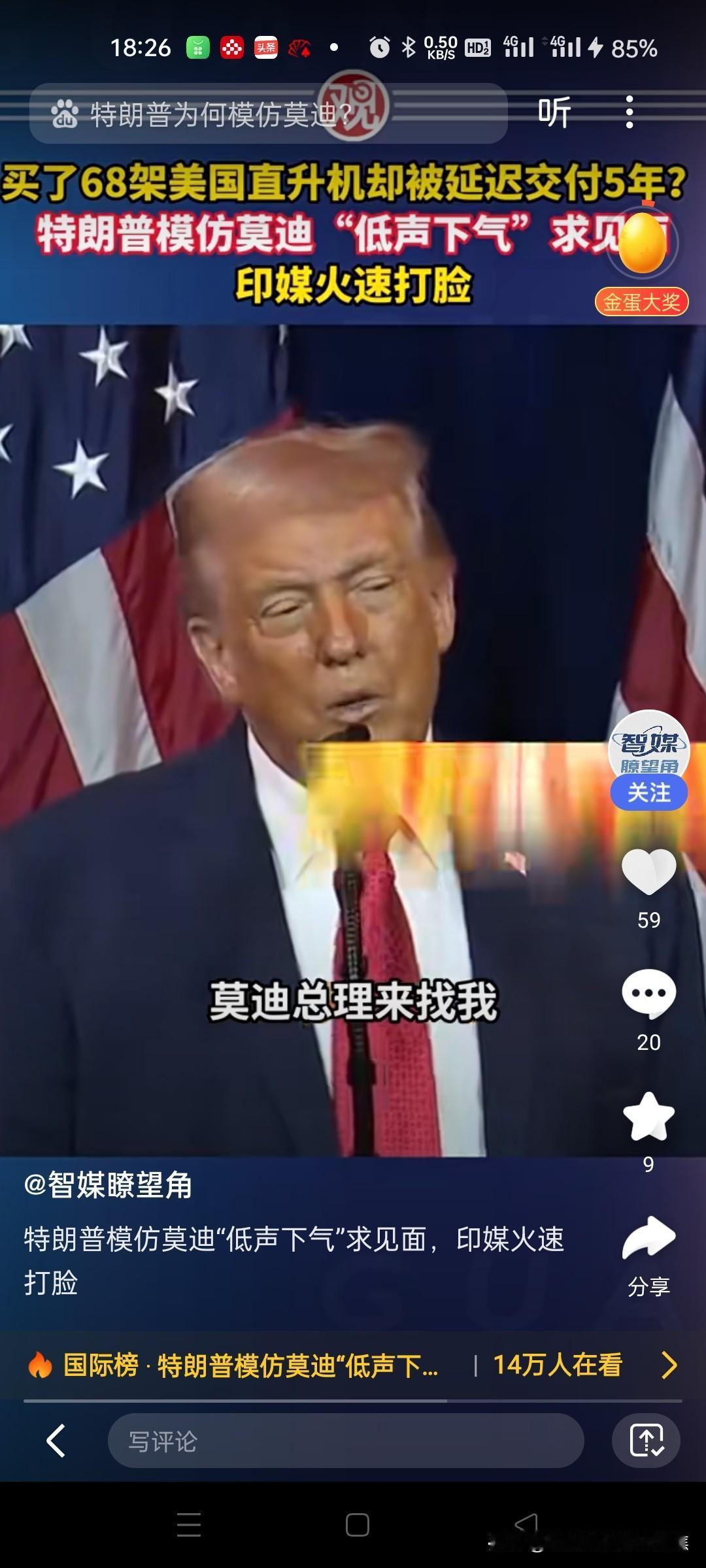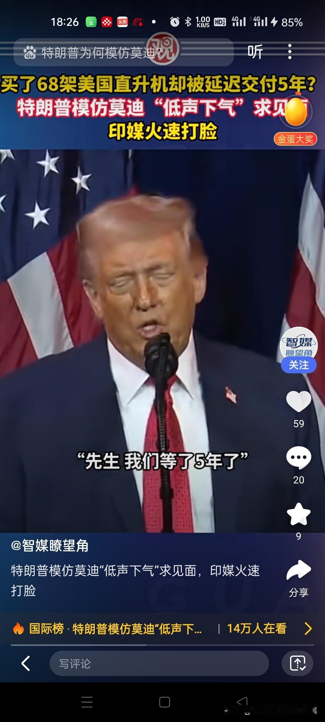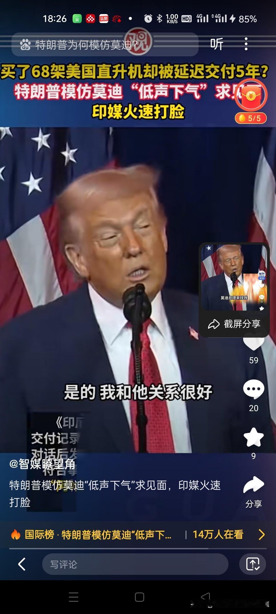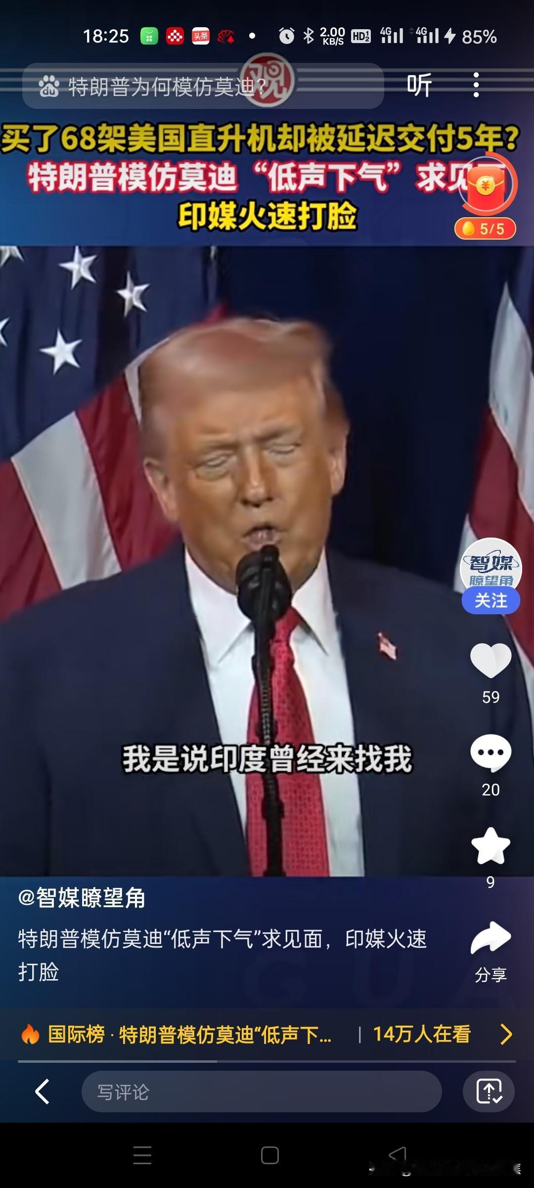特朗普模仿莫迪低声下气求见面 美国总统特朗普在提及印度采购68架阿帕奇直升机延迟交付5年时,模仿印度总理莫迪的语气称其"低声下气"请求会面,称两人关系良好但印方对关税不满。印媒随后反驳该表述。‌‌ 特朗普对莫迪的历史争议 ‌口音模仿‌:2018年,特朗普被曝用印度口音模仿莫迪谈论阿富汗问题,被批种族歧视。‌‌ ‌APEC峰会嘲讽‌:2025年10月,特朗普在演讲中称莫迪表面和善实则强硬,并即兴模仿其说话方式。‌‌ ‌图书馆言论‌:2019年,特朗普嘲讽莫迪在阿富汗建图书馆的贡献"相当于美国5小时花费"。‌‌ 印方对争议的回应 ‌否认承诺‌:针对特朗普称莫迪承诺停购俄石油,印度官员否认存在相关通话。‌‌ ‌辩护阿富汗项目‌:印方强调对阿援助基于当地需求,包括国会大厦、公路等30亿美元项目。‌‌特朗普争议发言 特朗普碰壁 特朗普自娱自乐 印度总理莫迪 莫迪 特朗普变脸术 莫迪怒怼特朗普