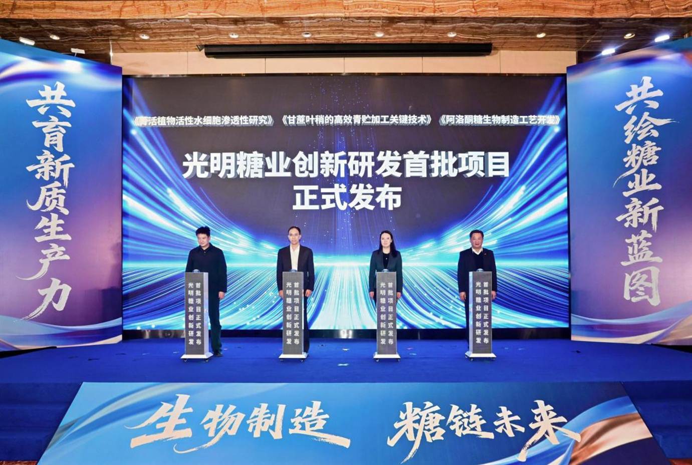 活动现场发布了光明糖业创新研发首批项目,包含《甘蔗叶稍的高效青贮加工关键技术》《菁活植物活性水细胞渗透性研究》与《阿洛酮糖生物制造工艺开发》等重点方向。这些项目将以此次战略合作为基础,由上海糖酒集团与南京工业大学团队共同探索研究,加快科技成果产业化,赋能光明糖业培育新发展动能。