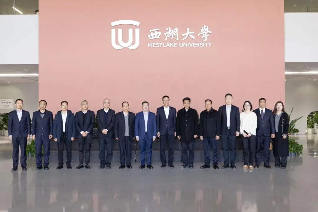 活动伊始,西湖大学校长施一公院士亲切会见了建设银行浙江省分行党委书记、行长张伟煜,以及金华市企业家协会会长、今飞控股集团董事长葛炳灶一行。施一公校长详细介绍了西湖大学“高起点、小而精、研究型”的办学定位与发展历程,其以科研为导向、聚焦前沿领域的治学理念与特色模式,令与会嘉宾深感共鸣。