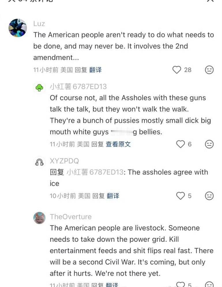美国人委屈死了,纷纷跑到某书上跟中国网友告洋状,他们愤怒地表示“美国人像牲口一样被对待,需要一场革命”他们狠起来甚至连自己人都骂,说他们是一群肥胖的白皮,什么都不会,字里行间看得出来他们是真的太憋屈了