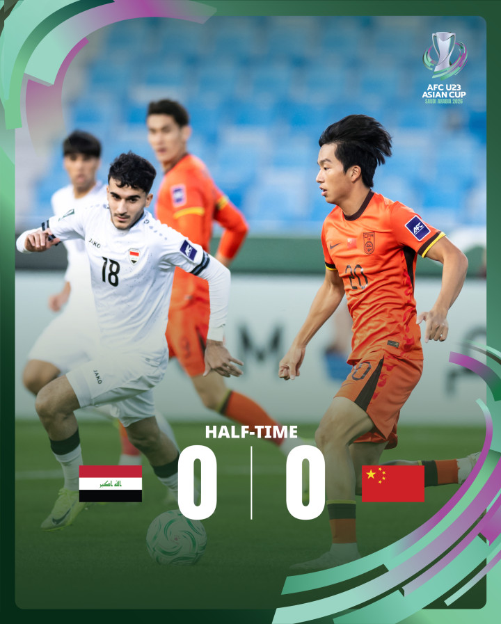 北京时间1月8日晚10点,中国U23男足迎来本届U23亚洲杯小组赛首个对手:伊拉克队。90分钟鏖战,两队0比0握手言和,各取1分。