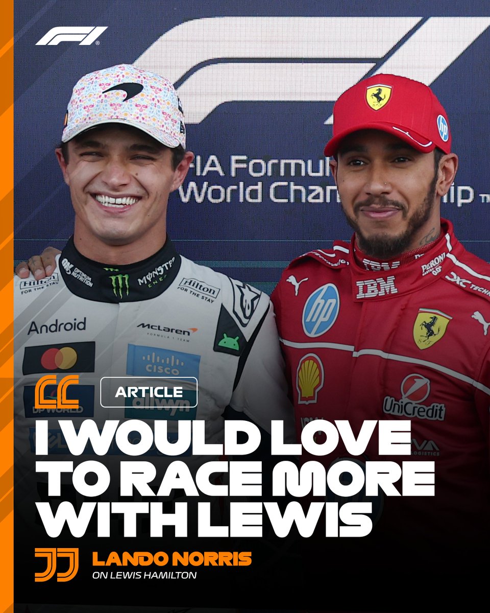 F1官方推特账号报道,兰多·诺里斯认为刘易斯·汉密尔顿能够从在法拉利首个赛季的艰难处境中"反弹"。这位卫冕世界冠军希望在2026年能有更多机会与汉密尔顿同场竞技#F1