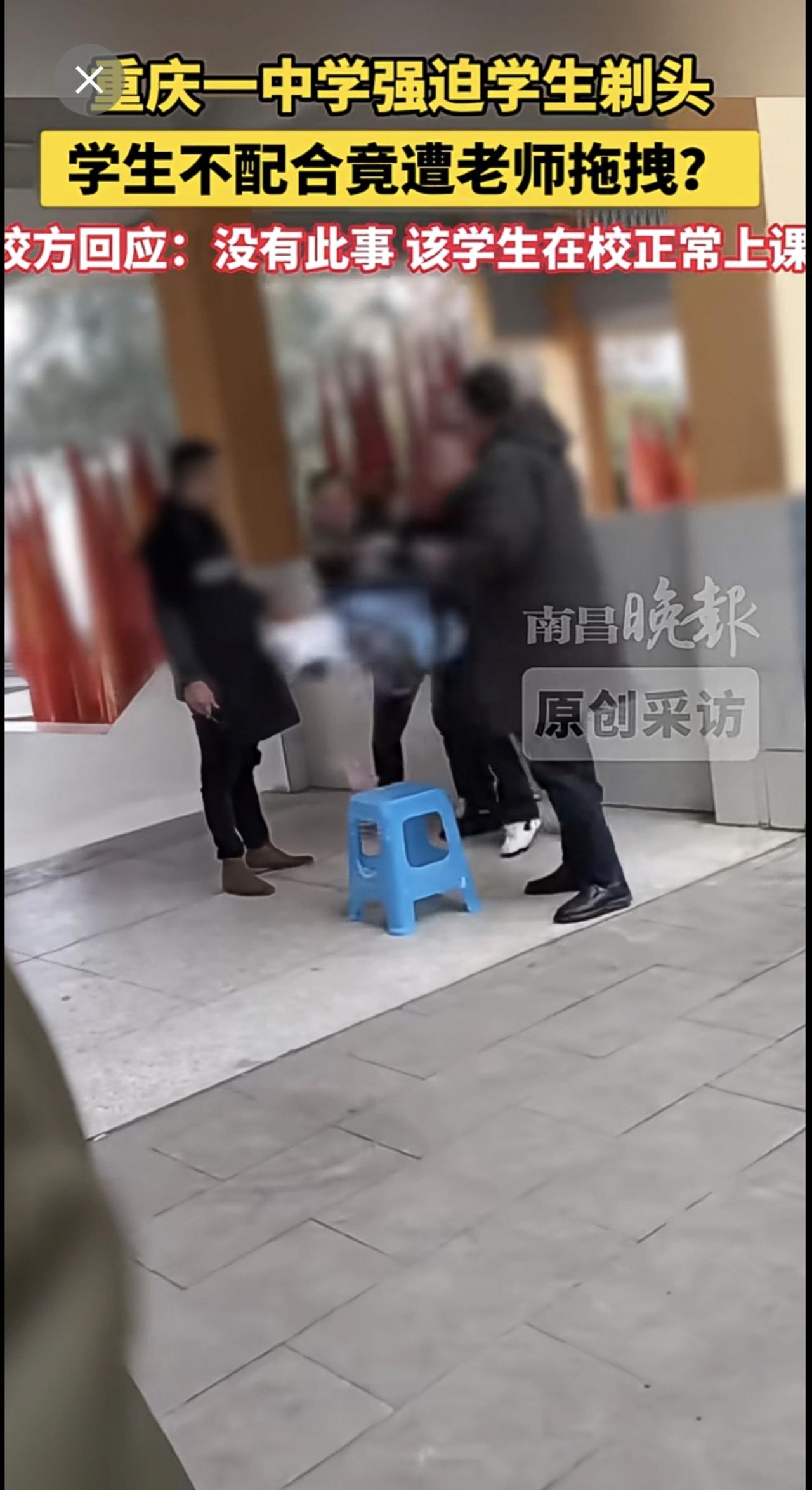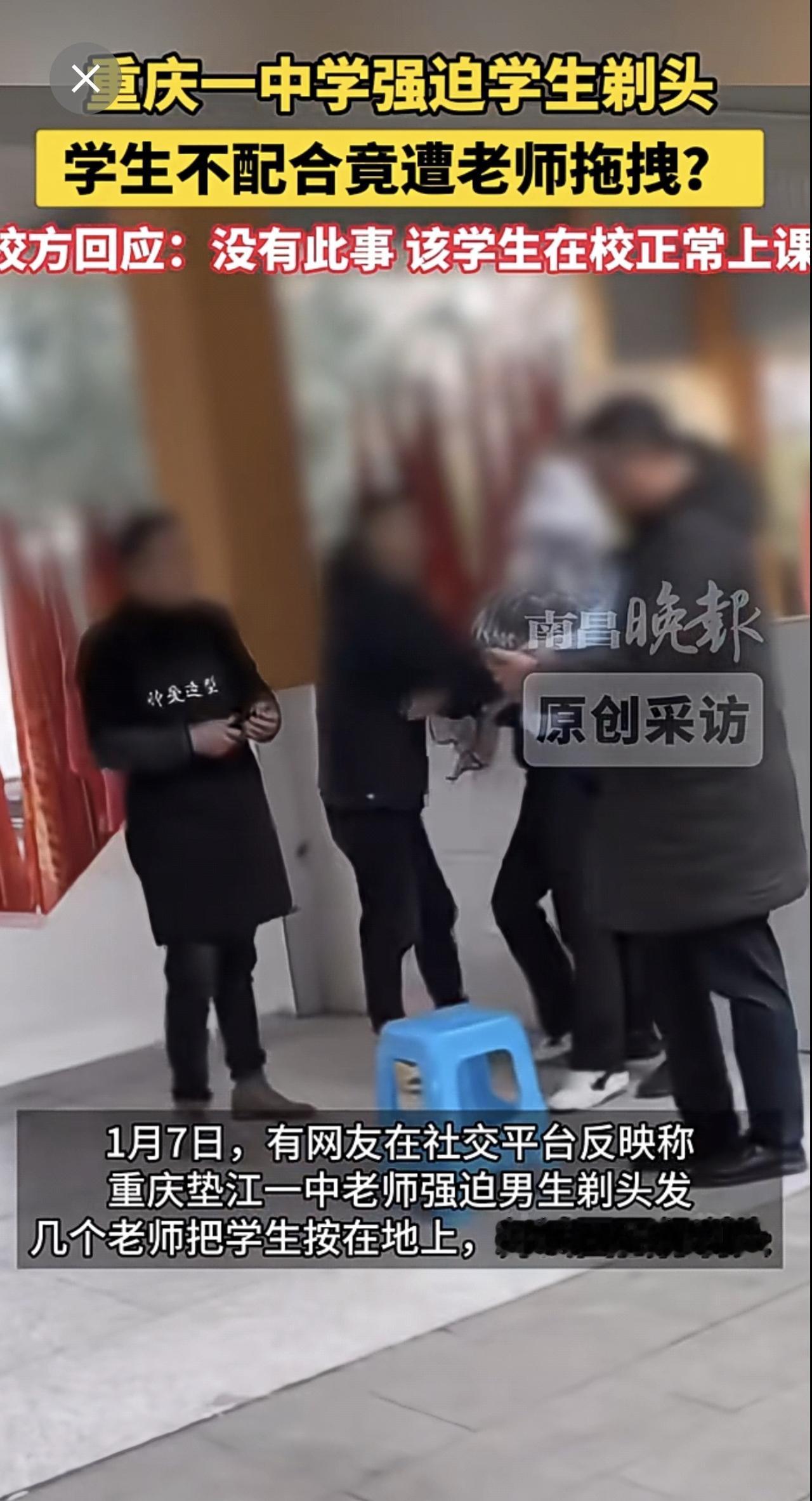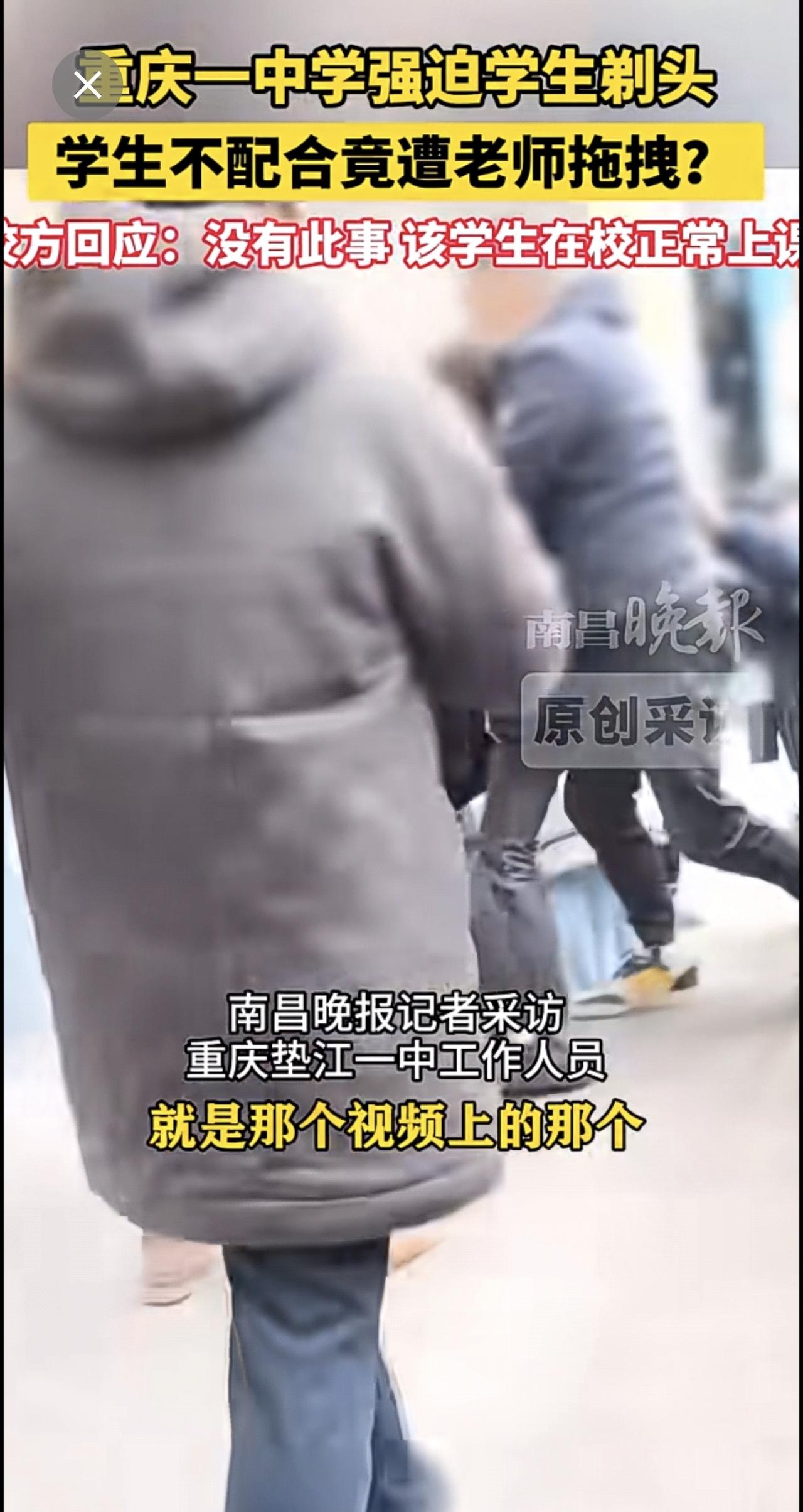 1月8日(原创采访)重庆一中学强迫学生剃头,学生不配合竟遭老师拖拽?校方回应:没