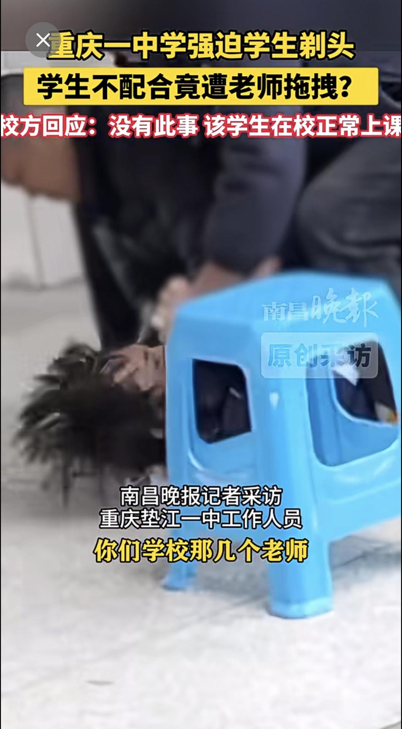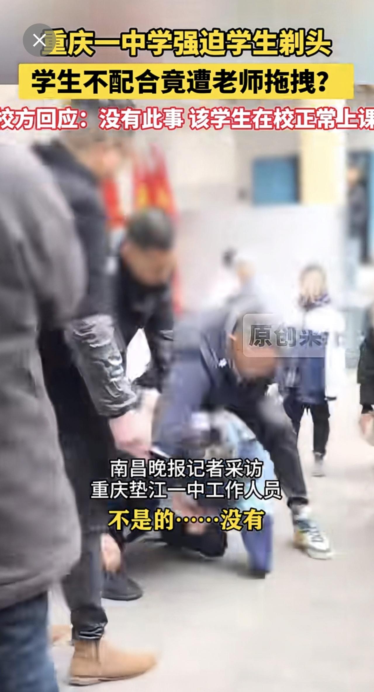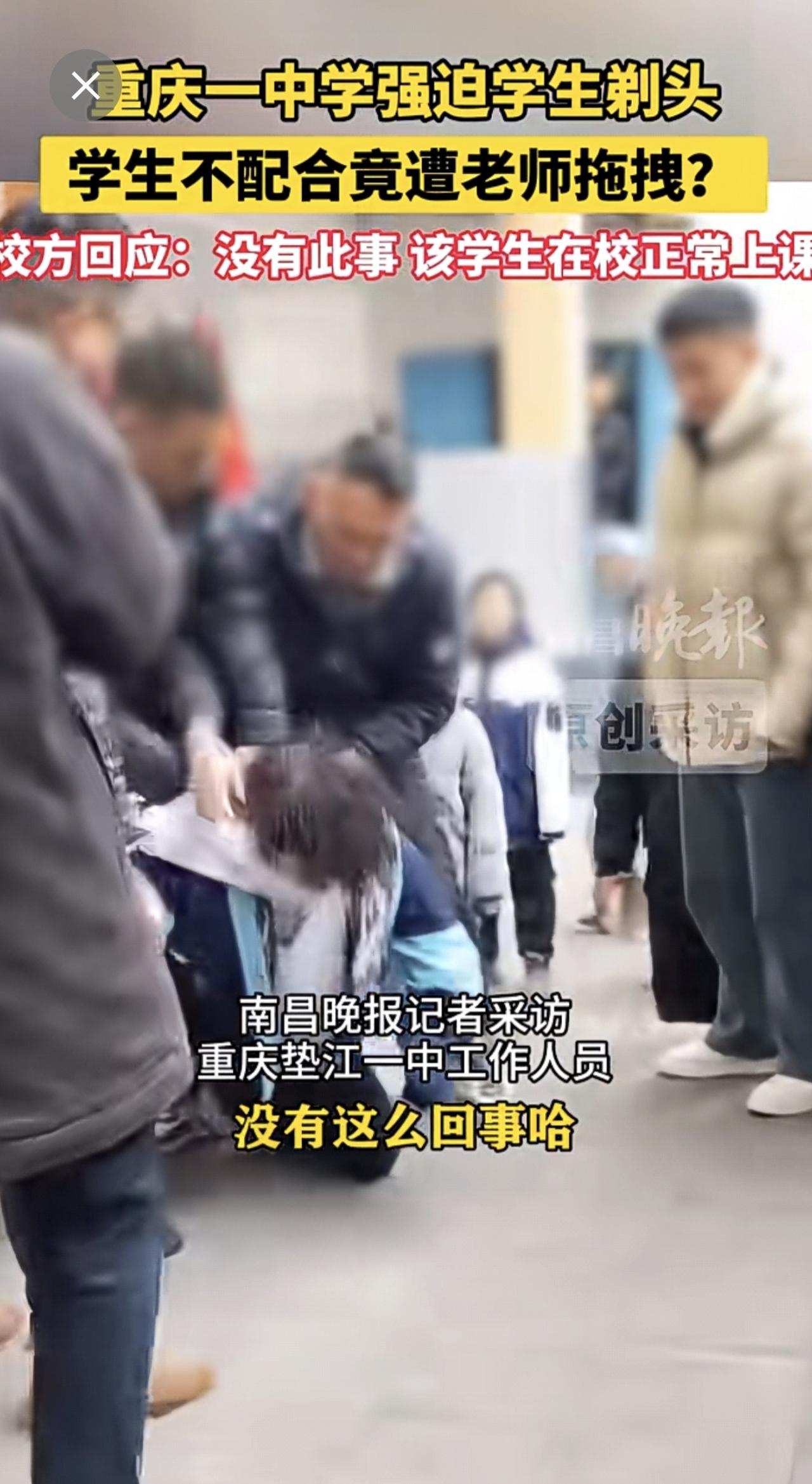 1月8日(原创采访)重庆一中学强迫学生剃头,学生不配合竟遭老师拖拽?校方回应:没