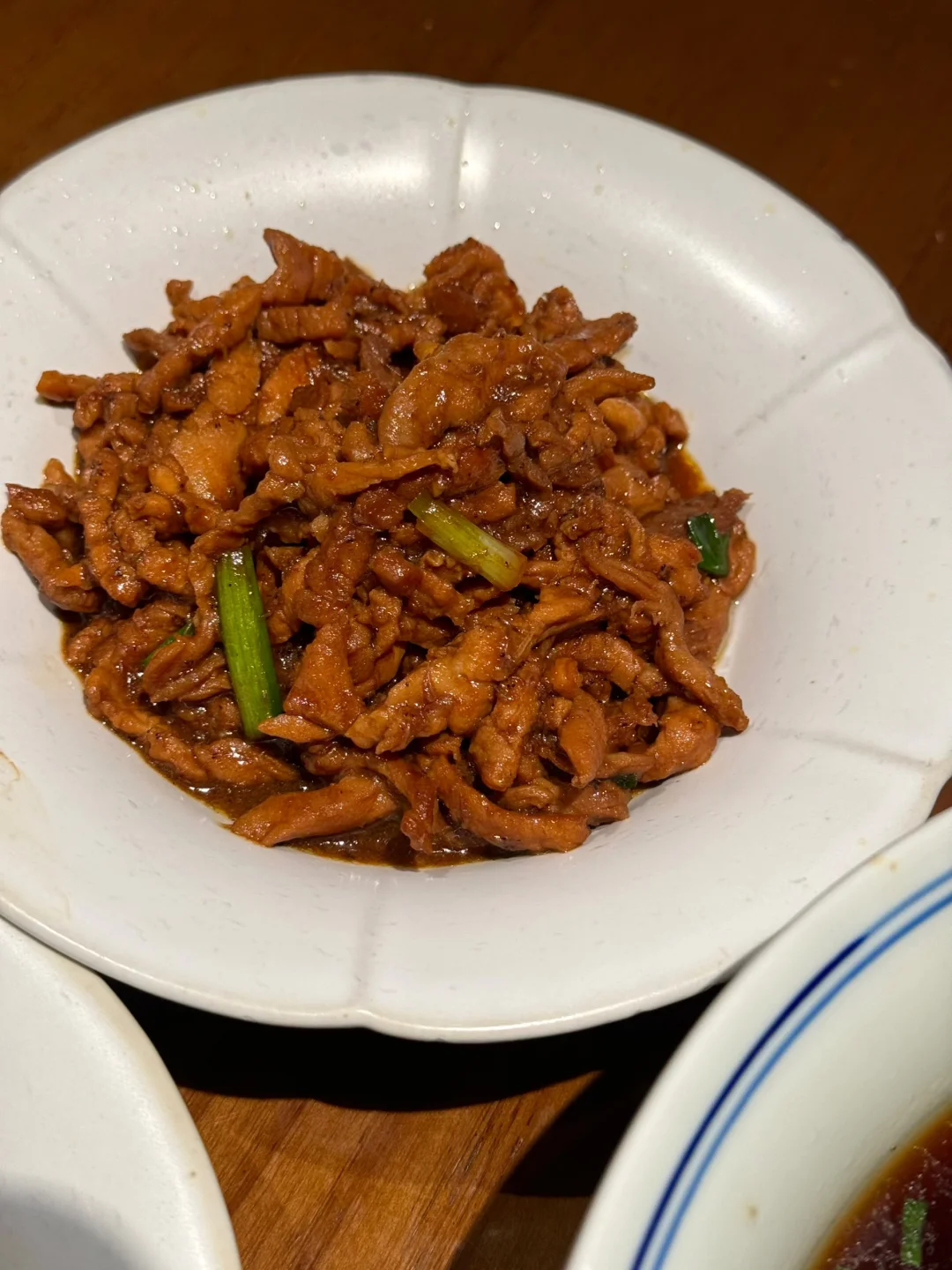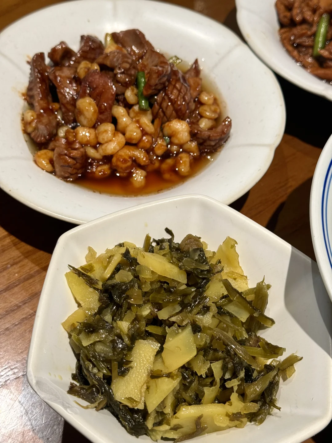 这是一家基本都是本地人会来吃的面馆,环境雅致 点了腰花虾仁和肉丝,雪菜笋丝,女孩子二两面足够啦