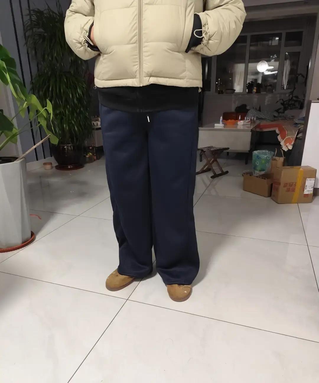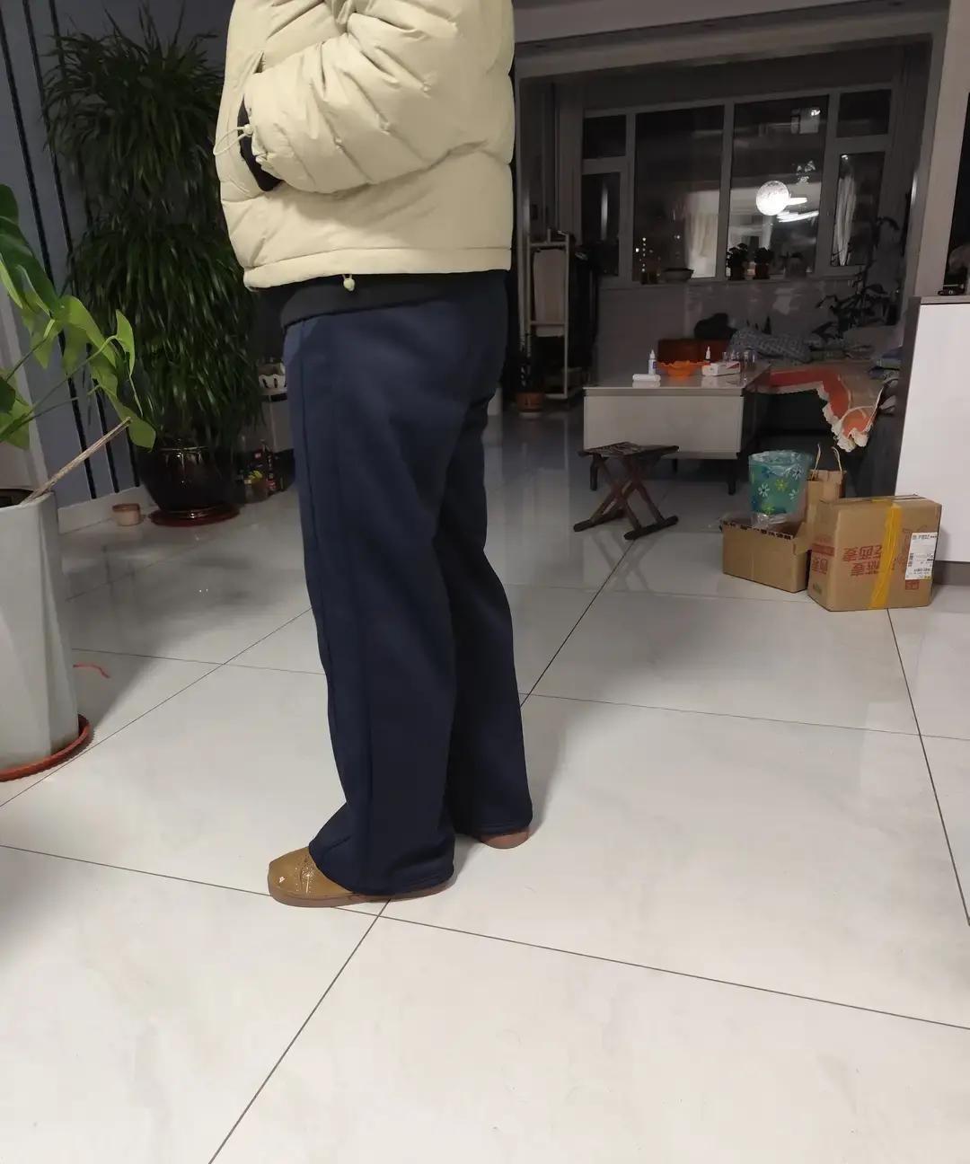 59块加绒阔腿裤到家,一上身我就皱眉,裤腿像两个麻袋。 老公在旁边狂夸显瘦洋气,我半信半疑留下。 晚上穿着在客厅来回走,暖气足,腿暖,心也软了,差点信了他的嘴。 第二天他拿手机给我拍照,我一看图,瞬间清醒:裤管堆成水桶,腰线低到失踪,滤镜当场碎一地。 合着现场是暖光加爱意,镜头才是照妖镜。 相机不骗人,夸得再甜也遮不住版型灾难。 冬天保命可以留,拍照还是别穿。