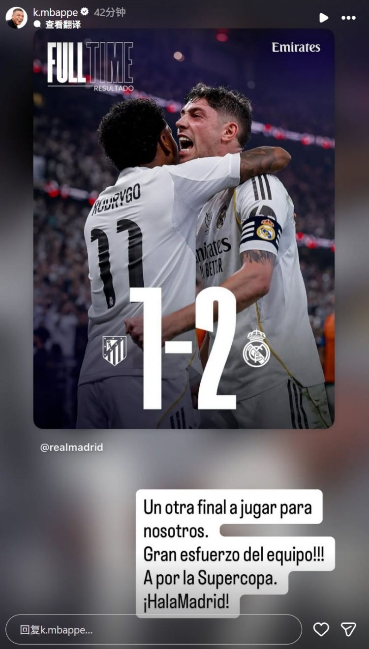 阿龙 1 2026-01-09 07:20 姆巴佩功力太强了,不但能吸引对方防守球员,还能把队友吸干,姆巴佩用进球打破了皇马的平衡,本来靠着防守就能赢球的,你非得上一个很能进球了,多上一个后卫多好,这场后面阿隆索也多上了几个后卫,还真能赢,