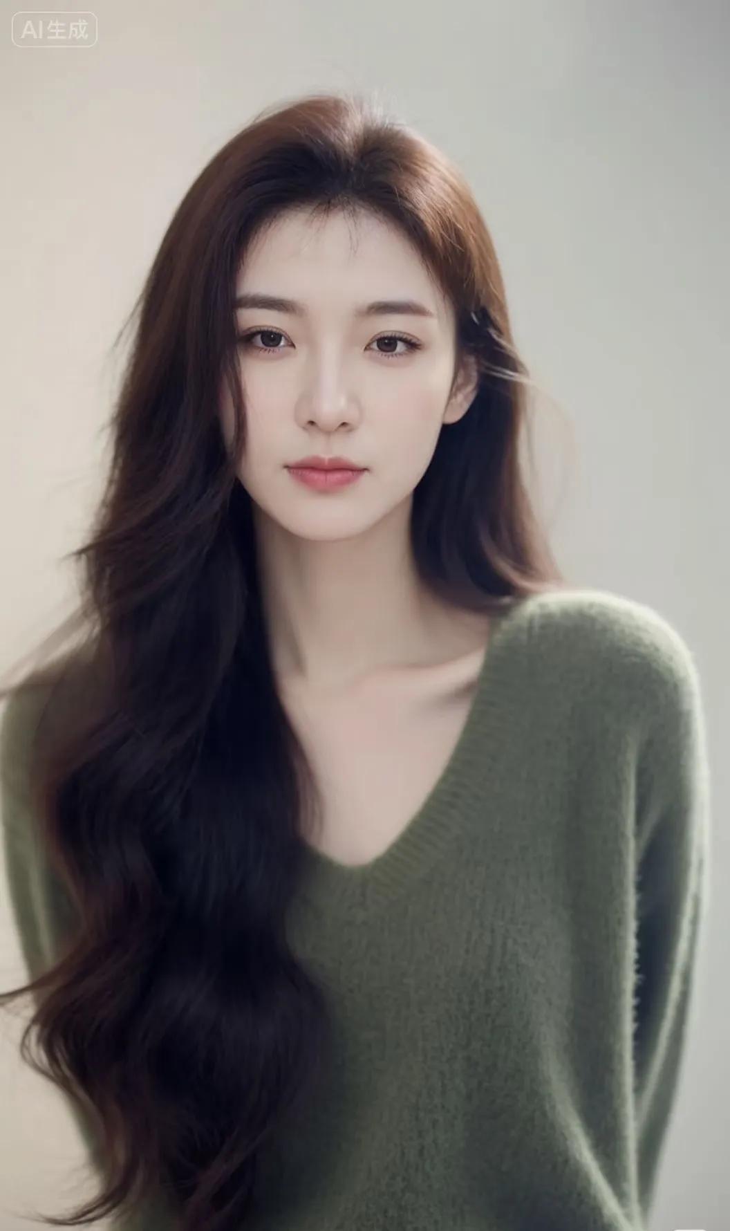 温柔气质,自然美态,绿色毛衣,清新自然。