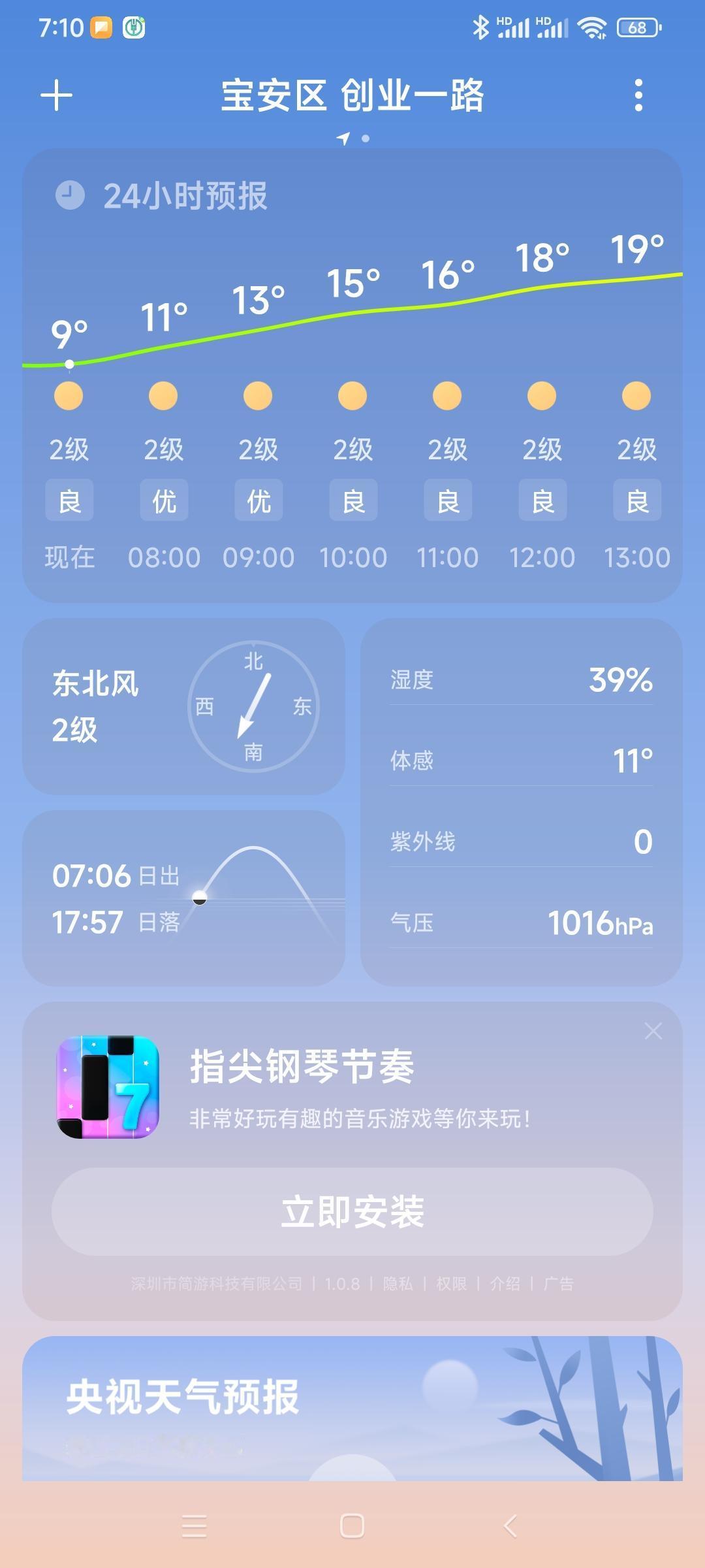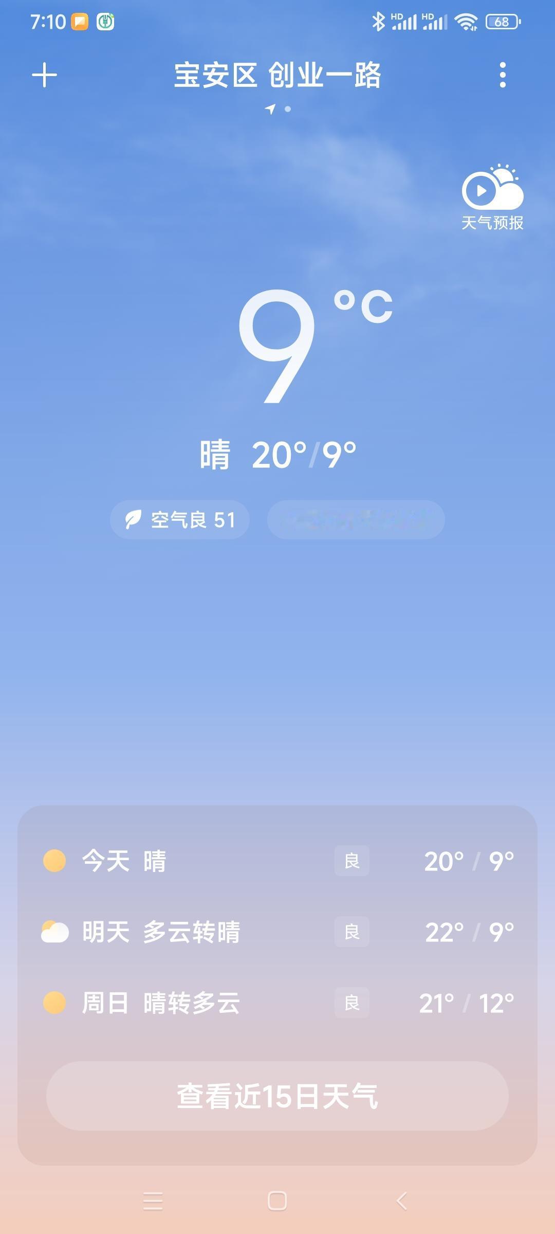 我的今日状态:😁轻松愉快 我这里的天气:☀️晴天今天深圳晴天,气温9度到20度