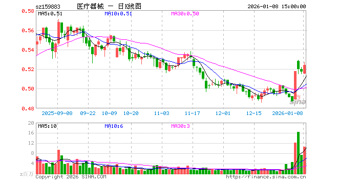 1月8日,医疗器械ETF(159883)涨1.35%,成交额5.57亿元。当日份额增加5.74亿份,最新份额为99.08亿份,近20个交易日份额增加16.26亿份。最新资产净值计算值为51.88亿元。