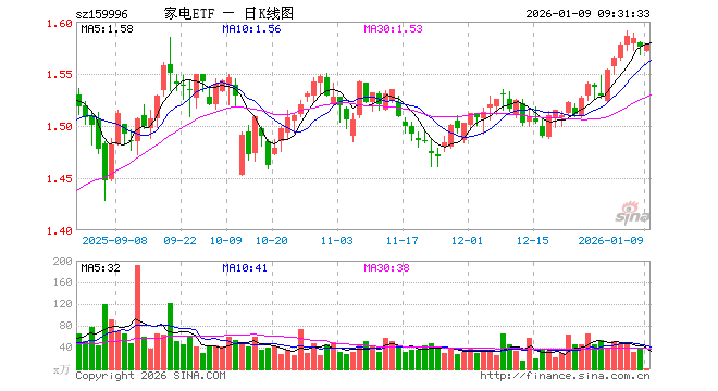 家电ETF(159996)业绩比较基准为中证全指家用电器指数收益率,管理人为国泰基金管理有限公司,基金经理为苗梦羽,成立(2020-02-27)以来回报为57.63%,近一个月回报为2.90%。