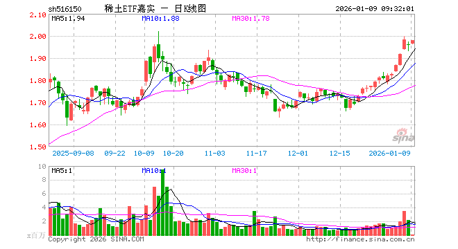 1月9日,稀土ETF嘉实(516150)开盘涨0.31%,报1.963元。稀土ETF嘉实(516150)重仓股方面,北方稀土开盘跌0.43%,卧龙电驱跌0.30%,领益智造跌0.73%,中国稀土跌0.12%,盛和资源跌0.09%,格林美跌0.91%,金风科技涨9.99%,包钢股份涨0.00%,厦门钨业跌0.46%,中国铝业跌1.17%。