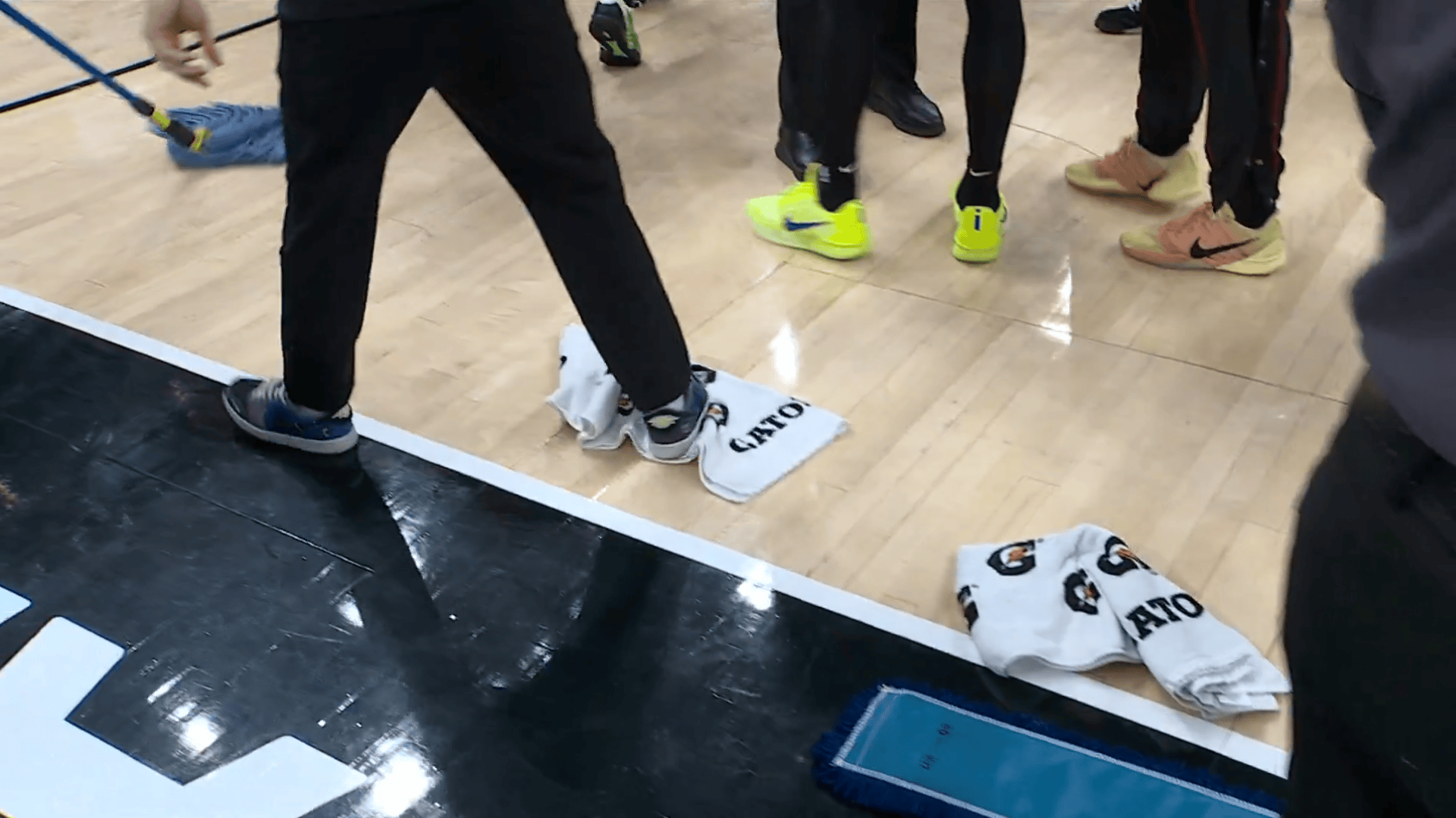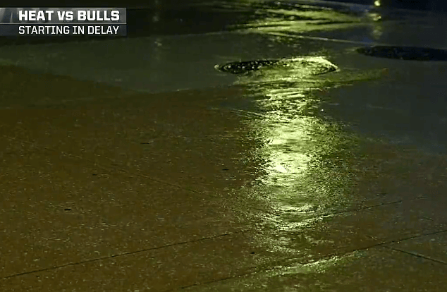 美记发文报道:由于芝加哥当地下雨,联合中心球馆出现内部漏水,球场上出现了冷凝水,比赛无法如期进行。