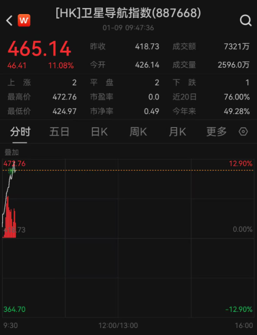 商业航天概念板块走强 香港卫星导航指数涨超11%