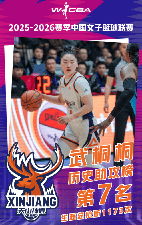 虎扑01月09日讯WCBA官方发文:祝贺武桐桐1173次助攻,跻身联赛历史助攻榜第七。