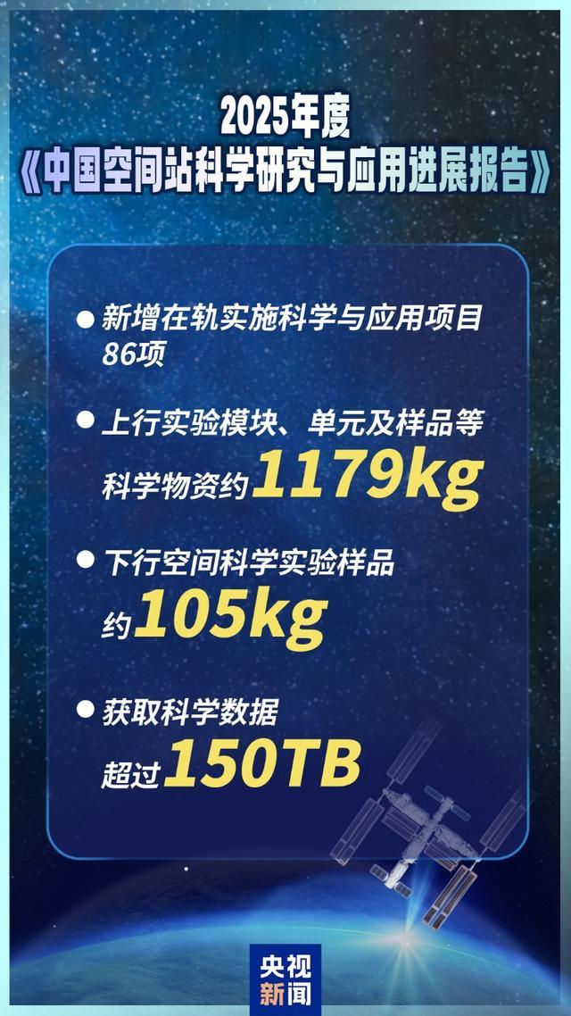 据中国载人航天工程办公室消息,北京时间2026年1月8日,中国载人航天工程办公室面向全社会发布了2025年度《中国空间站科学研究与应用进展报告》。>>全文