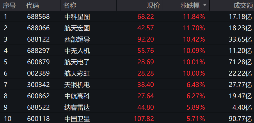 截至2026年1月9日10:48,同类规模最大的通用航空ETF(159378)上涨4.21%。成分股航天电子(600879)、航天彩虹(002389)涨停,航天宏图(688066)涨超11%,西部超导(688122)涨超10%。