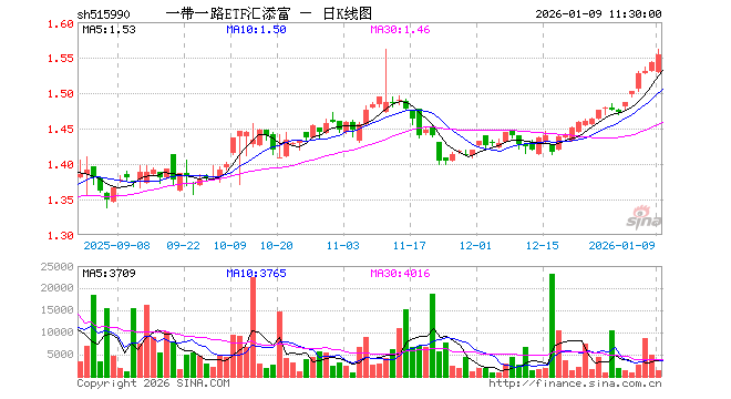 1月9日,截止午间收盘,一带一路ETF汇添富(515990)涨0.71%,报1.554元,成交额21.34万元。一带一路ETF汇添富(515990)重仓股方面,平高电气截止午盘涨0.95%,山东黄金涨5.15%,紫金矿业涨2.51%,中远海控跌0.07%,广东宏大涨1.79%,中国铝业涨2.56%,小商品城涨0.93%,中远海发涨0.40%,中海油服涨0.98%,云铝股份涨1.18%。