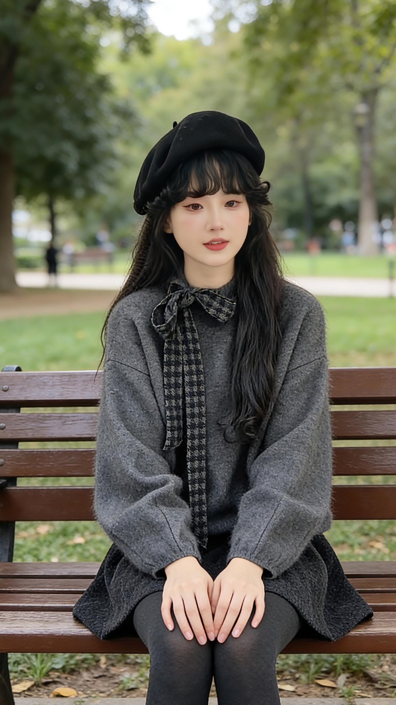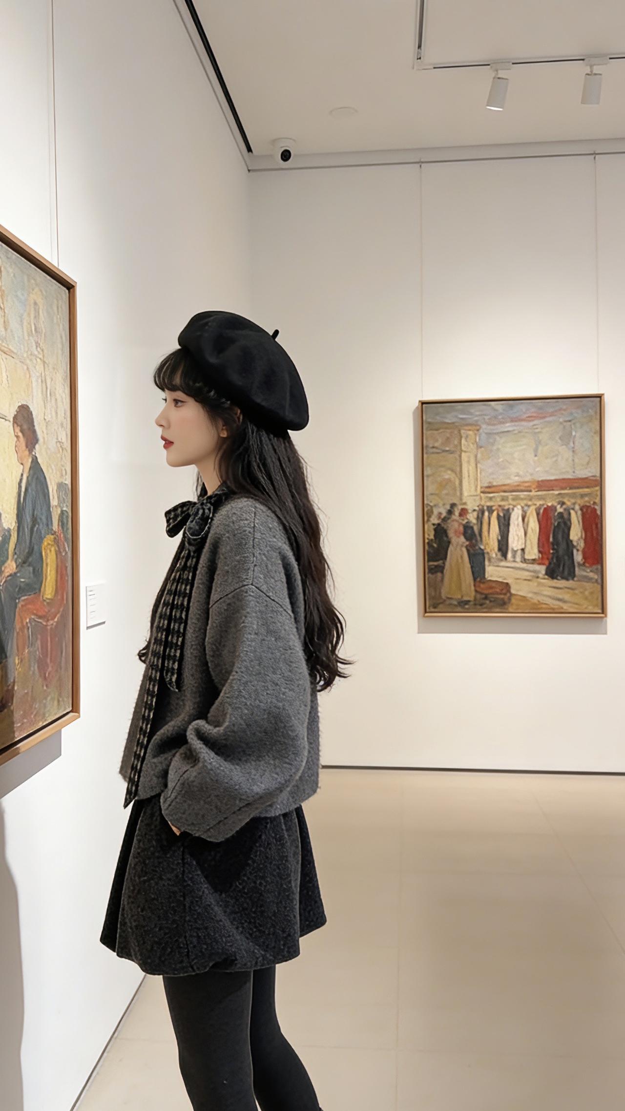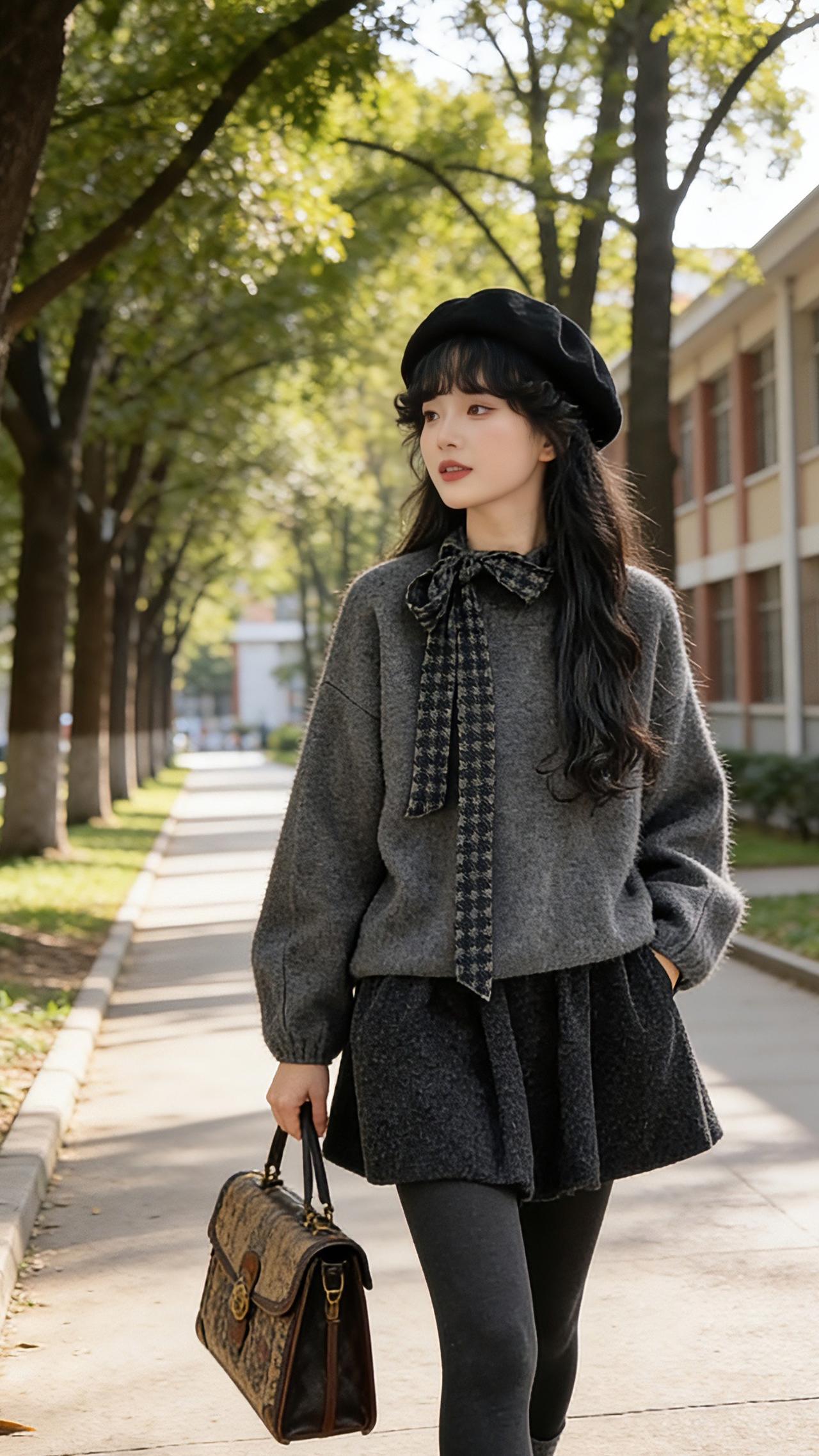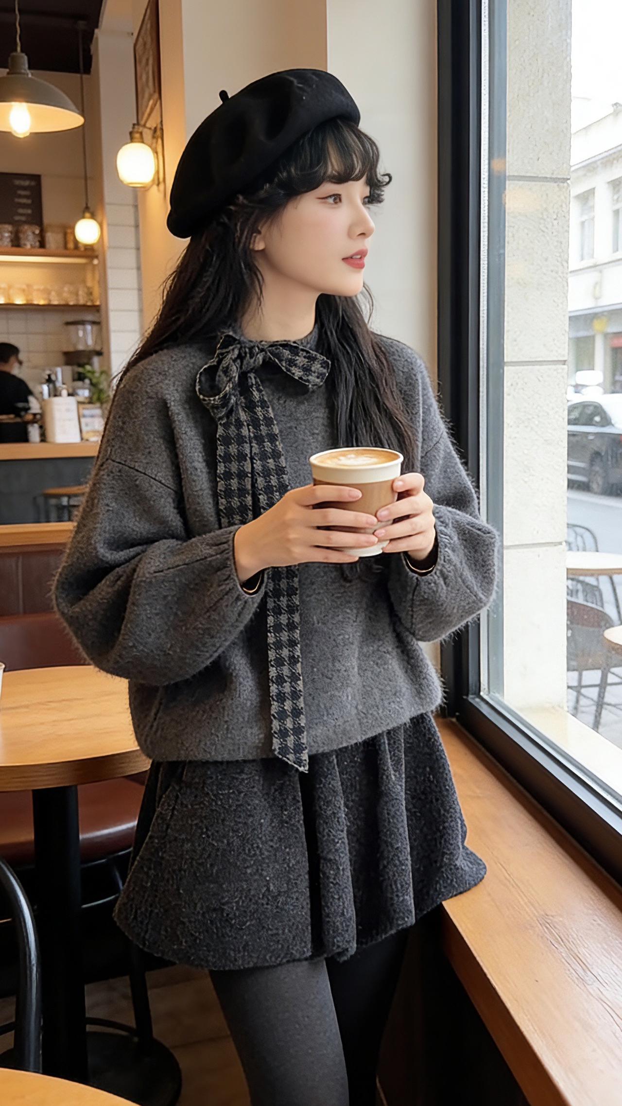 舒服到不想脱下来的一套,软fufu的质感太适合降温天了。搭配贝雷帽,直接把氛围感