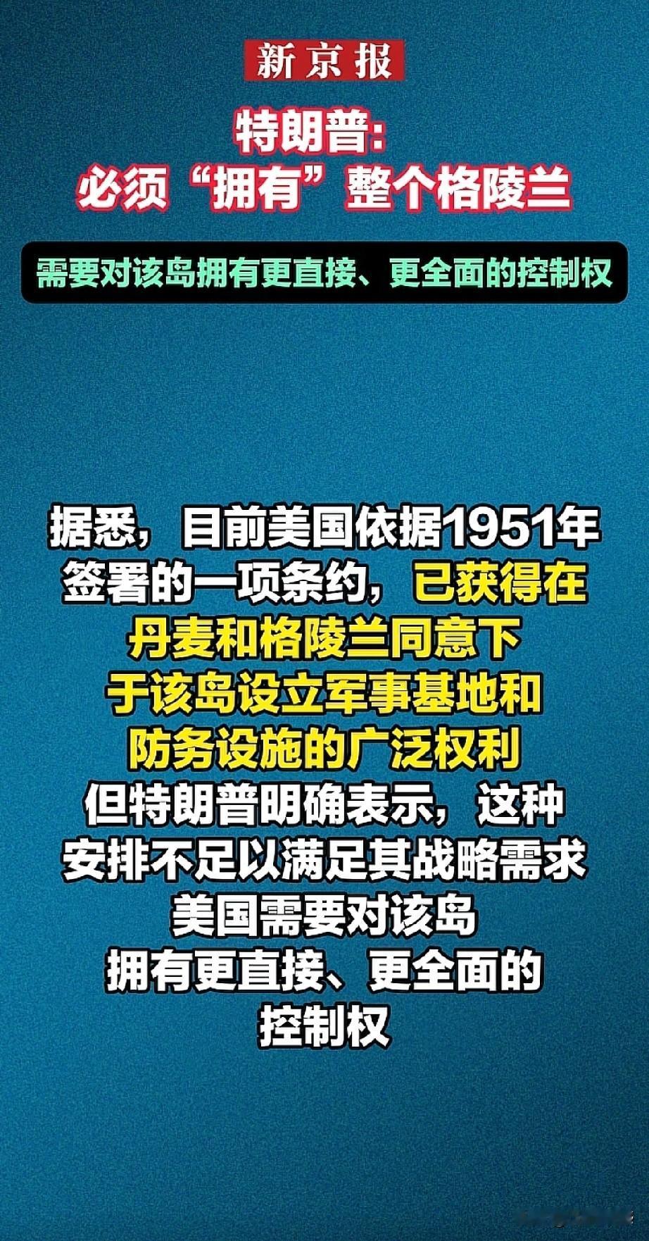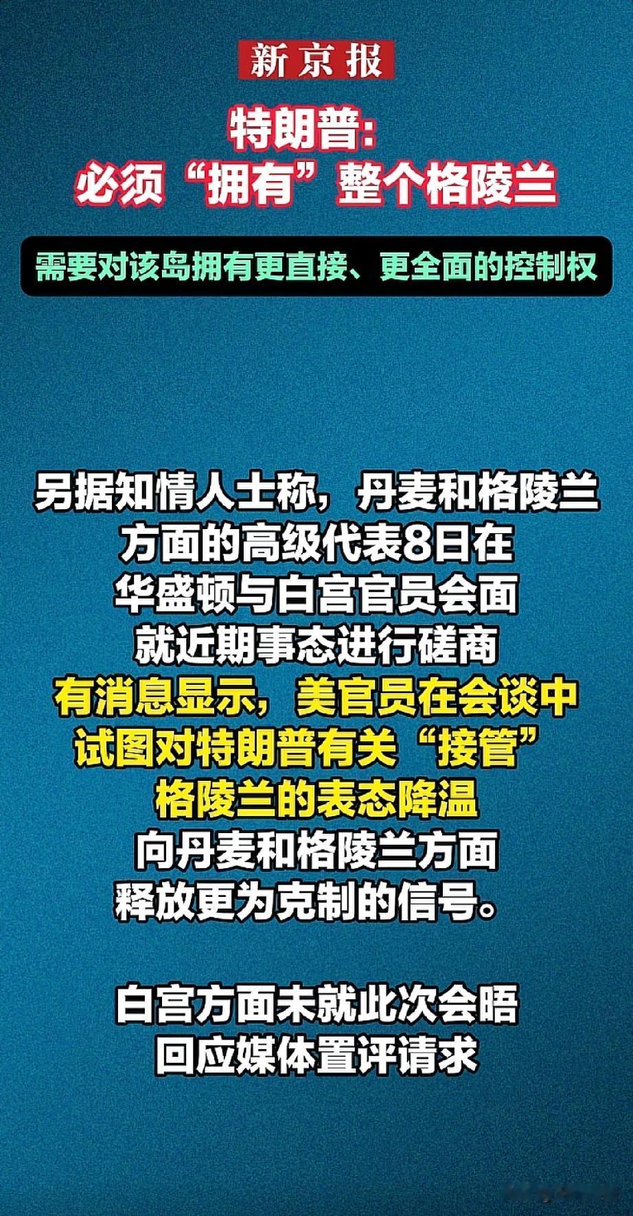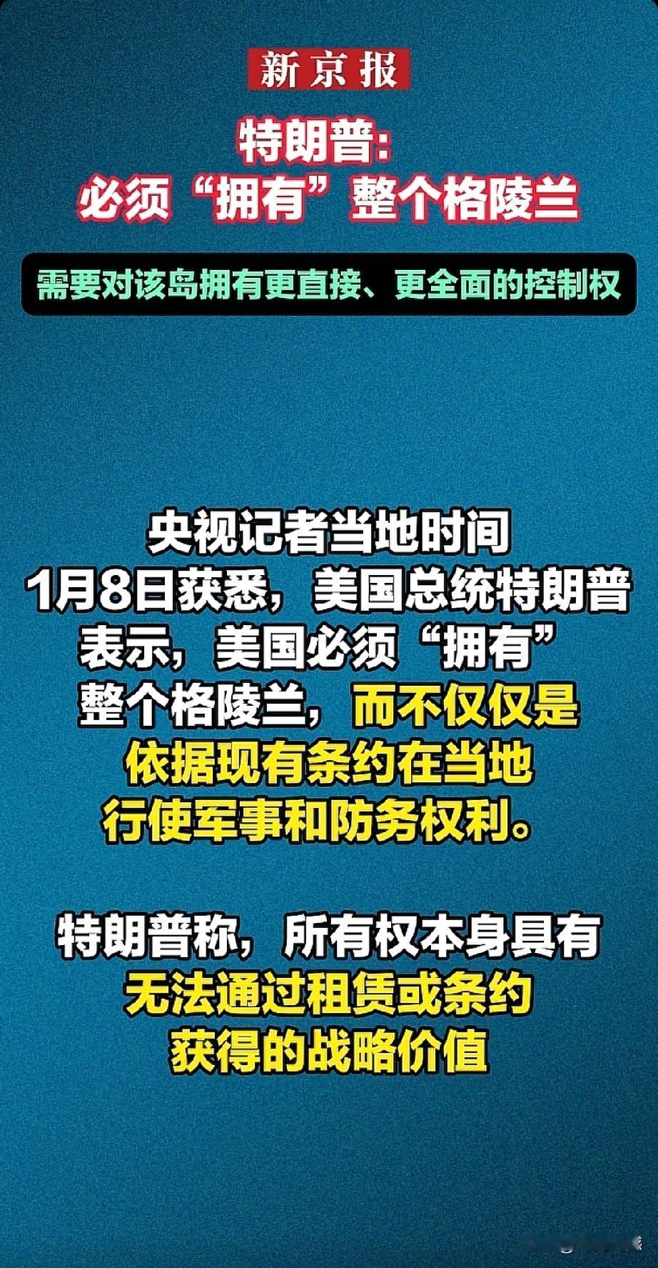 特朗普的行事风格让人难以琢磨,上一秒还在谈笑风生,但谁也猜不出下一秒他还会干出什么样的事情,现在看来,格陵兰岛已经成为特朗普的心头肉,不吃下这块肉,他是不会善罢甘休的,问题是他一旦吃下了这块肉,后续会引起什么样的连锁反应呢?现在看来,无法想象!