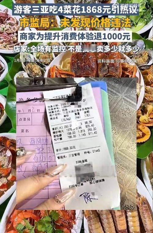 商家太黑心了! 近日,安徽游客陈女士在网络发帖,曝光了自己在海南三亚旅游期间遇到的“被带店消费”事件,引发广泛关注。据陈女士介绍,她在元旦假期期间前往三亚旅游,期间被一些非法运营车辆拉到一家海鲜店用餐。账单显示,四道海鲜和两个椰子共计消费1930元,其中四道海鲜的价格高达1868元,令人震惊。 此事件引发公众对旅游陷阱和非法经营行为的担忧。游客在外旅游,本应享受轻松愉快的假期,但被“带店消费”不仅可能造成经济损失,还影响旅游体验。尤其是高价海鲜,让人质疑是否存在价格虚高或强制消费的情况。 海南作为著名的旅游目的地,吸引了大量游客,但也存在一些非法运营车辆或导游带领游客进入“套路店”的现象。这些“陷阱”不仅侵害消费者权益,也损害了当地旅游的声誉。 相关部门应加强监管,打击非法经营和强制消费行为,维护旅游市场的秩序。同时,游客也应提高警惕,避免被“带店”消费,提前了解旅游目的地的正规商家信息,避免成为“受害者”。 这起事件再次提醒我们,旅游安全和权益保护尤为重要。作为游客,保持警觉、理性消费;作为管理部门,要强化监管、净化市场环境。只有多方共同努力,才能让旅游变得更加安全、愉快和有保障。
