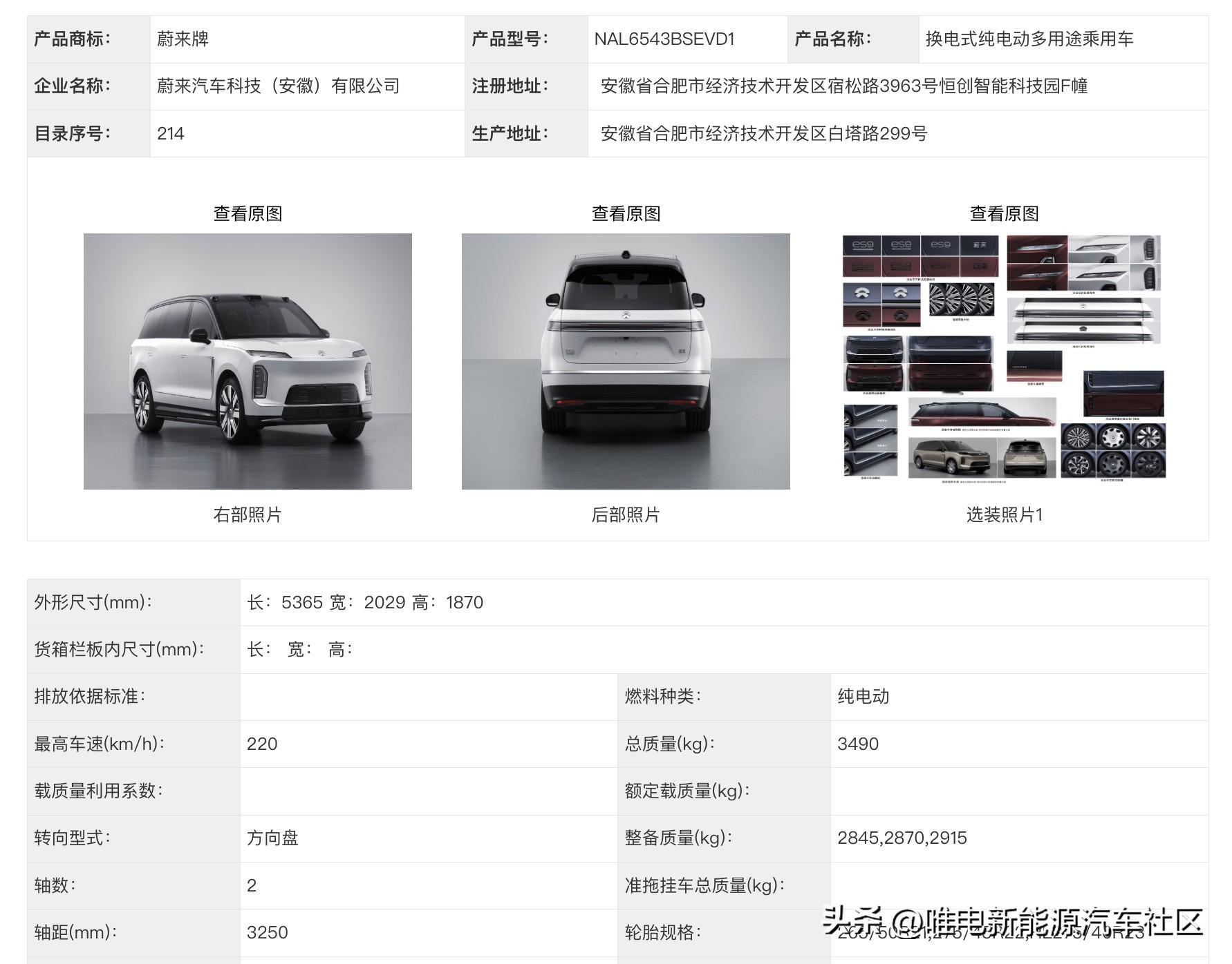 蔚来ES9申报了[思考]车身尺寸5365×2029×1870mm,轴距...