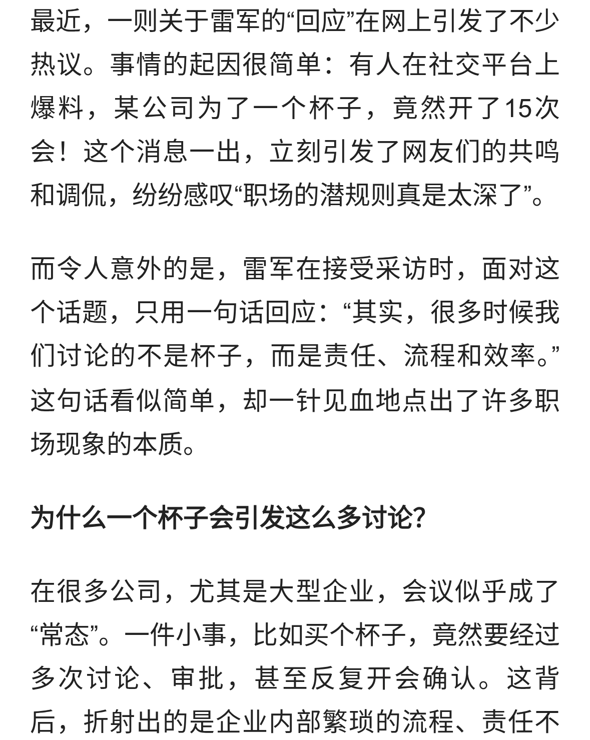 雷军回应为了一个杯子开十五次会