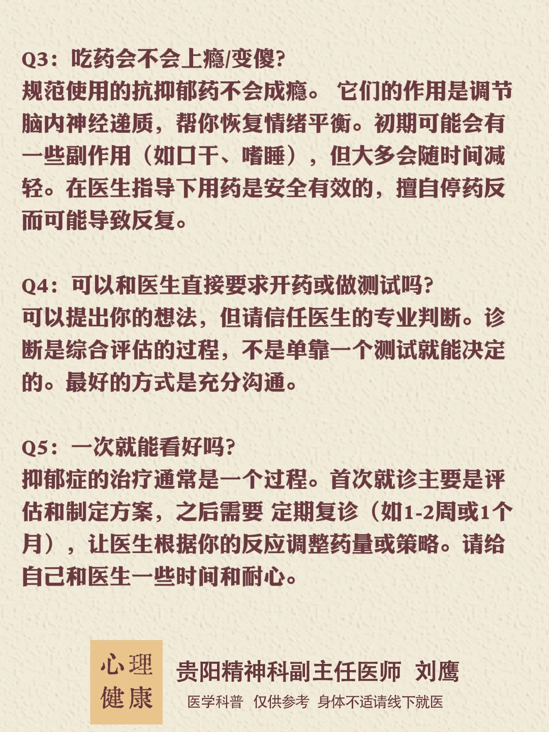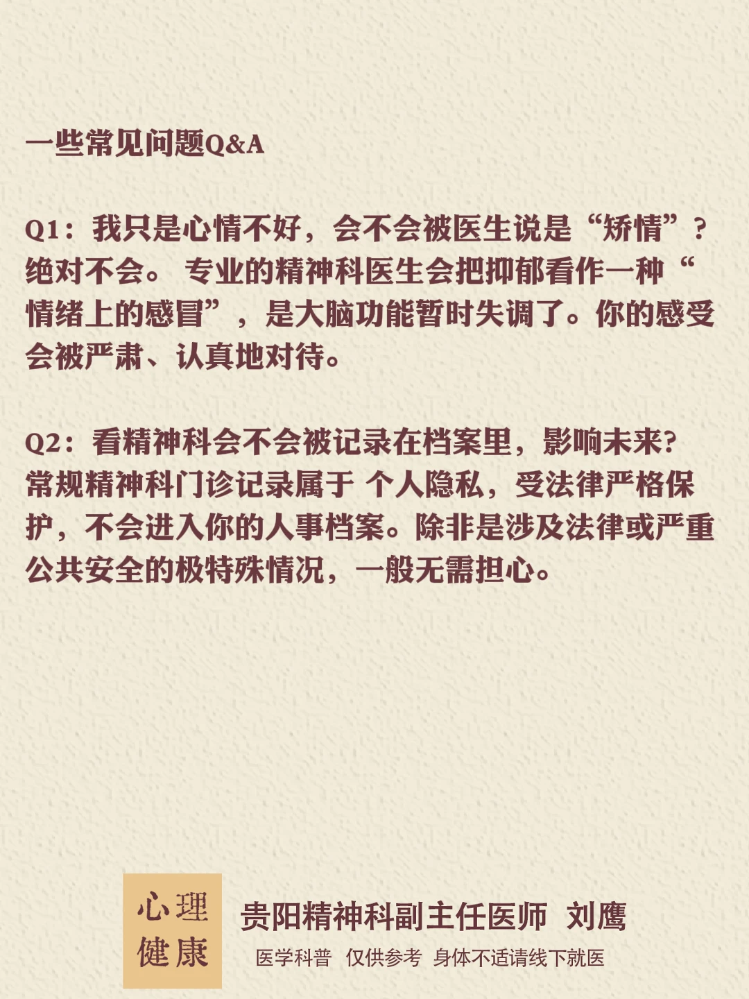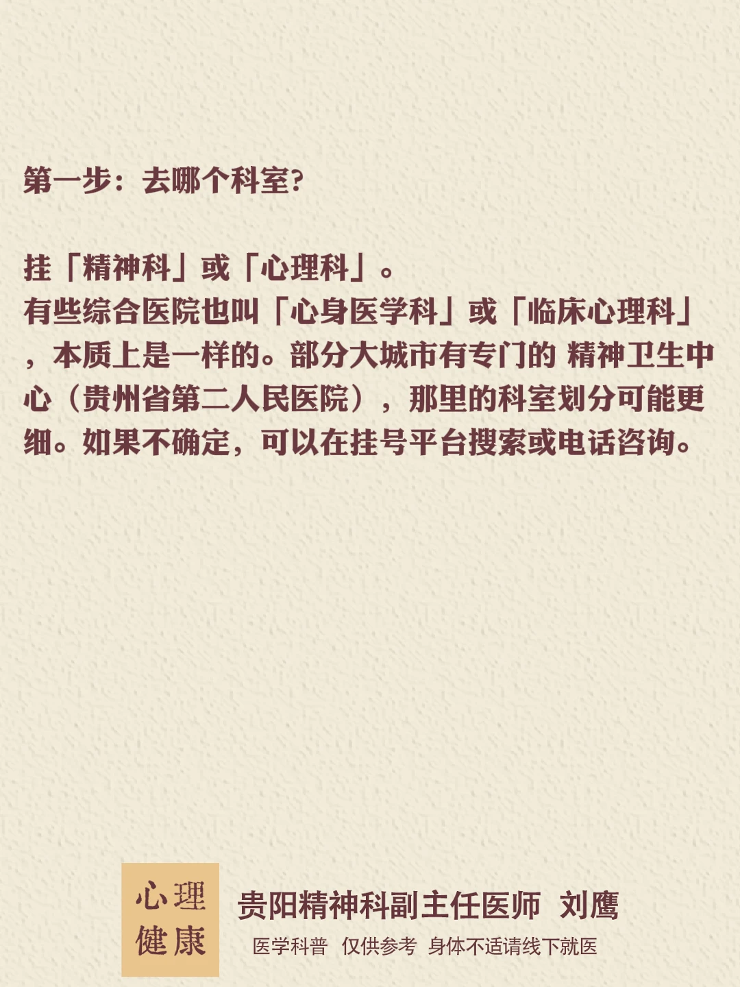 贵州的朋友们,大家好,我是贵阳精神心理科医生刘鹰。 走进诊室的那一刻,你已经迈出了最关键的一步。这条路或许不易,但请记住,你不是一个人在挣扎。专业的帮助、科学的治疗,以及你为自己争取健康的勇气,终将带你穿越这段阴霾。