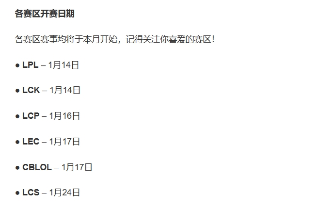 直播吧01月09日讯《英雄联盟》2026赛季已经开始,官方也公布了全球各大赛区联赛的开赛时间