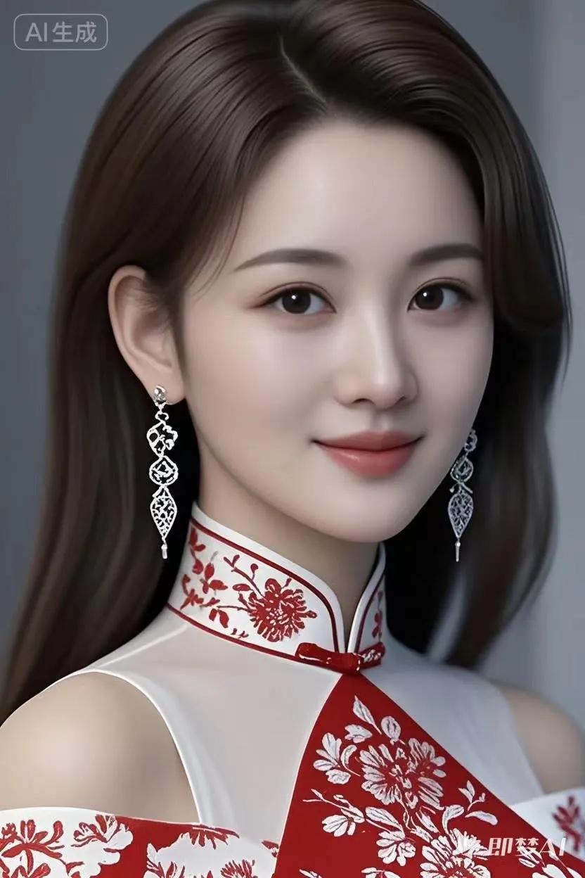 红衫映眸蕴雅致深棕的背景似揉了焦糖的柔雾,将红色衣装的明艳衬得恰到好处。那