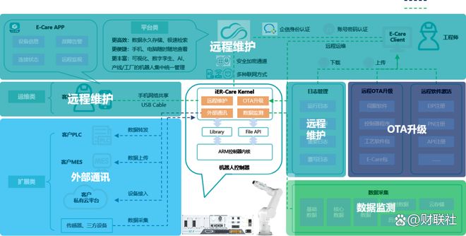 iER.OS以数据、应用、AI为核心,实现从封闭架构到开放架构、云边协同的系统跨越,不仅显著提升运动控制性能,更在开放性、智能化与协同性上取得突破。通过构建“机器人+AI”架构,打通数据接口、感知模块与控制核心,强化机器人的环境感知、实时分析与自主决策能力。同时,iER.OS提供丰富的算法库与模块化开发工具,支持用户及合作伙伴自主开发、封装与部署专属工艺包。开放AI集成接口,基于“外脑”的力量,不断提升系统的智能分析与决策能力。