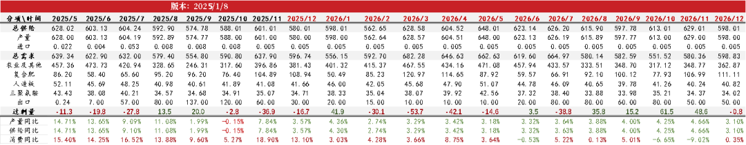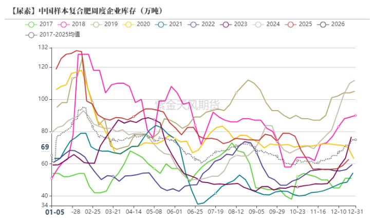 需求:中性偏空冬储需求近期仍维持刚性采购,复合肥开工率尚处于相对高位,但随着春节了临近,采购需求即将进入尾声,后续复合肥开工率即将季节性走低,后续累库压力或将出现。