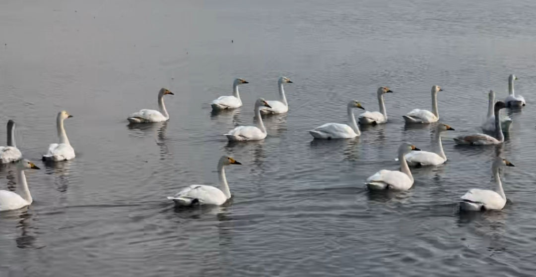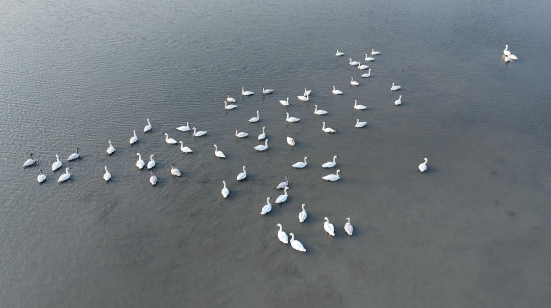 夕阳西下,宜兴滆湖湖面波光粼粼。40余只天鹅结伴成群,或自由游弋,或观望啼鸣,或展翅飞翔,婀娜优美的身姿为静谧的湖岸增添了一道灵动而诗意的风景线。