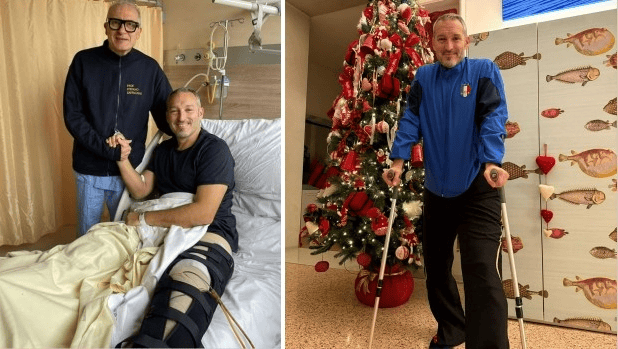 "很好,很好。我于11月19日在博洛尼亚的里佐利医院由扎法尼尼教授及其团队做了手术。我接受了胫骨和股骨的双水平外翻截骨术,并植入了骨髓浓缩干细胞。基本上,我的左腿,就是弯曲更严重的那条,被矫正了。"