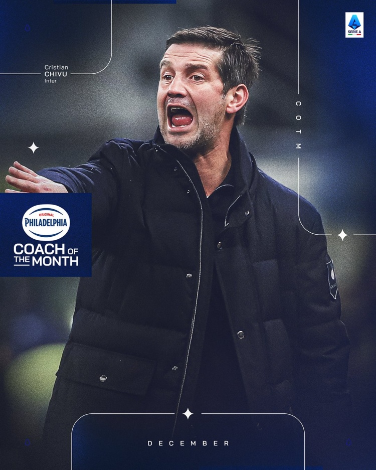 国米主帅齐沃12月带队参加3场意甲比赛,全部取胜,打进7球仅丢1球,意甲官方宣布,齐沃当选意甲12月最佳主帅。