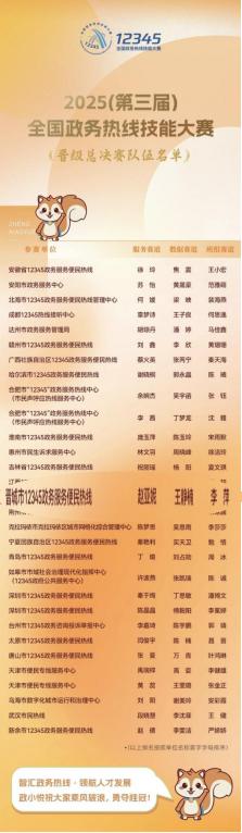 近日,2025年(第三届)全国政务热线技能大赛传来喜讯,由晋城市12345政务服务便民热线选派的李萍、赵亚妮、王静楠三名选手组建的参赛队伍,凭借扎实的业务功底、娴熟的服务技能和沉着稳健的线上表现,在全国207支参赛队伍中脱颖而出,成功闯入全国总决赛30强,为我市赢得了荣誉。