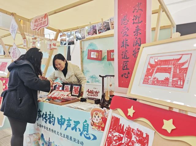 市民在市集进行剪纸体验,感受非遗匠心摄影:陶磊