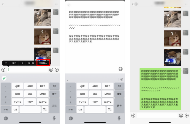 长按聊天框,在弹出的选项中滑到最右侧,就能选择“全屏输入”,打开思路。