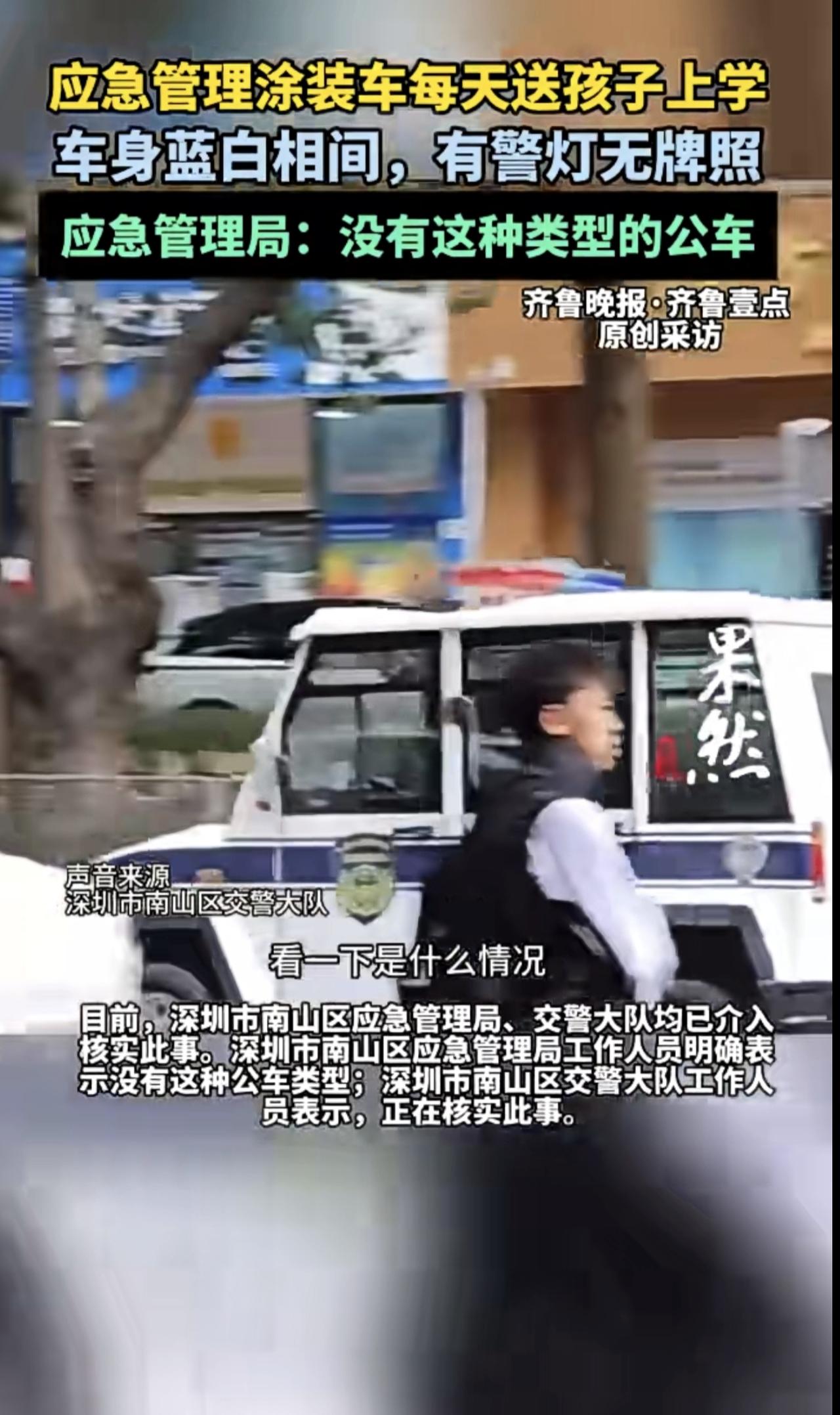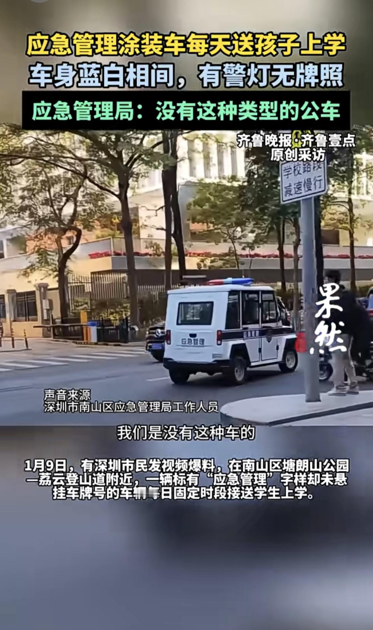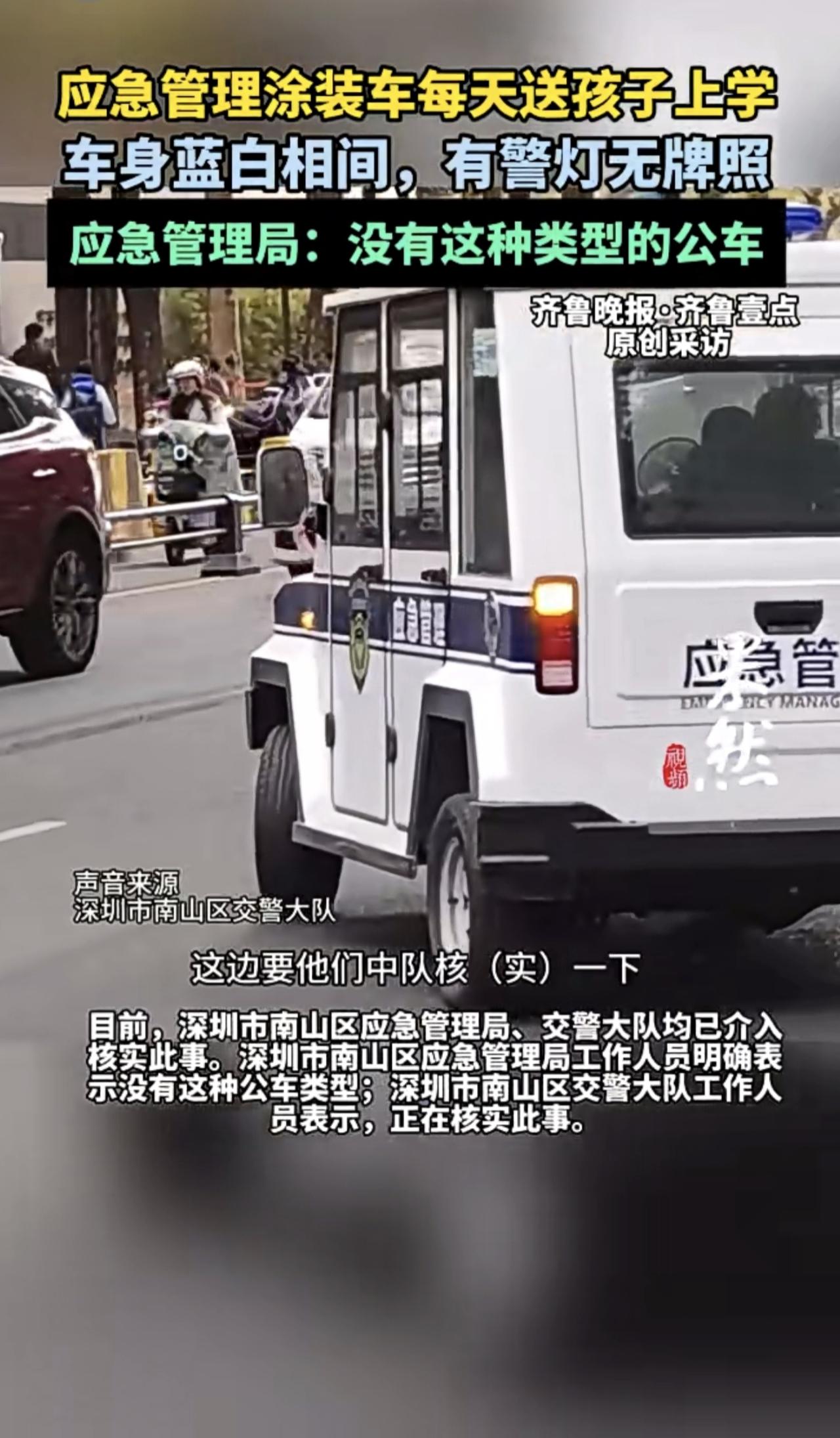 “应急管理车”每天送孩子上学,有警灯无牌照,应急管理局回应:没有这种类型的公车