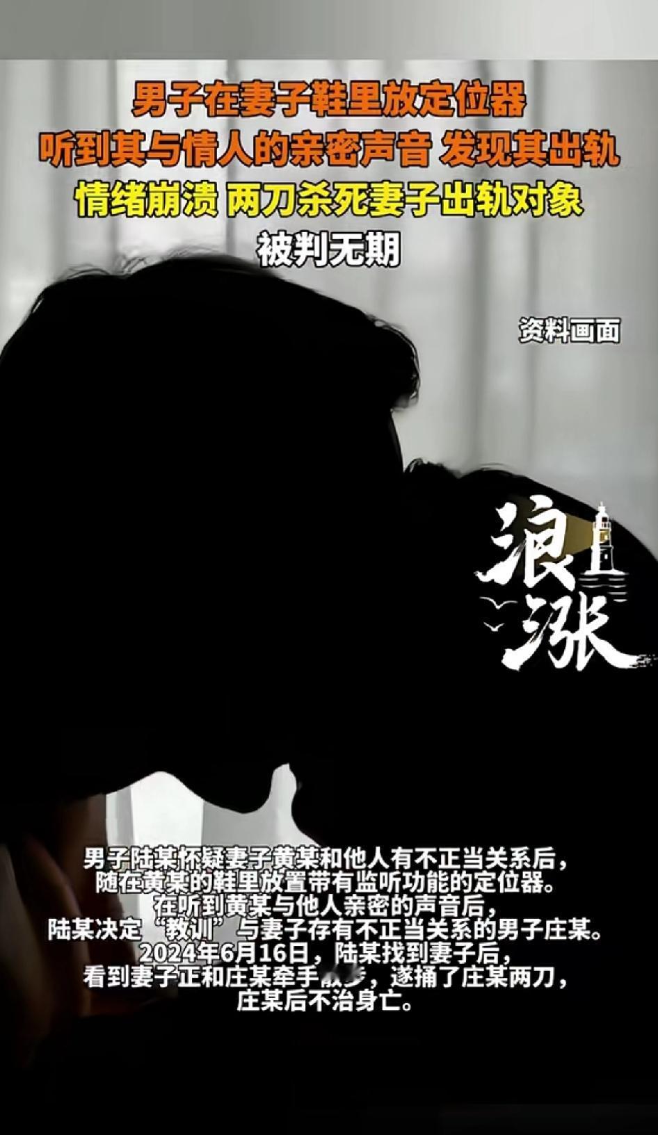 男子在妻子鞋里放定位器,听到妻子与情人的亲密声音,发现其出轨对象,愤怒之下两刀砍死妻子出轨对象。 深圳的陆某,因怀疑妻子出轨,在她鞋里放了能录音的定位器,这可是国家禁止的间谍工具,网上几十块就能买到。 听到妻子和庄某亲密对话后,他动了杀心。2024年6月16日下午,陆某带着剔骨刀,根据定位找到散步的两人,冲上去捅了庄某两刀,庄某不治身亡。 自古奸情出人命,吃喝嫖赌抽,碰了哪一样都会倾家荡产。 只能说这个女人太害人,情人被杀,丈夫无期都是她引起的。 一审陆某被判无期,他上诉也被驳回。法院认定这不是激情杀人,他是蓄意报复。虽他有自首、妻子出轨等情节,但法律不认情面。感情再委屈也不能私刑杀人,如今网上随便能买监听设备,大家得知道这事儿违法,冲动行事只会让自己悔恨终身。