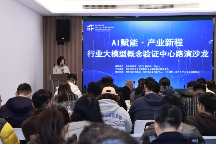2026年1月8日下午,杭州市滨江区浙工大人工智能创新研究院(以下简称“浙工大智研院”)的会议厅内座无虚席。这里正在举行的,是“AI赋能・产业新程”行业大模型概念验证中心首场路演沙龙活动。