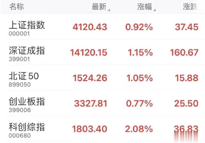 [沪指站上4100点#两市成交额超3万亿元#]#连续2日超百股涨停#今天(9日),A股三大指数集体上涨。截至收盘,上证指数涨0.92%站上4100点,深证成指涨1.15%,创业板指涨0.77%。截至今天15时收盘,沪深两市成交额3.12万亿,较上一个交易日放量3224亿,时隔73个交易日后再度站上3万亿大关,历史第五次突破3万亿。全市场超3900只个股上涨,连续2日超百股涨停。(央视新闻)